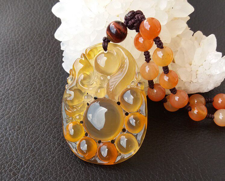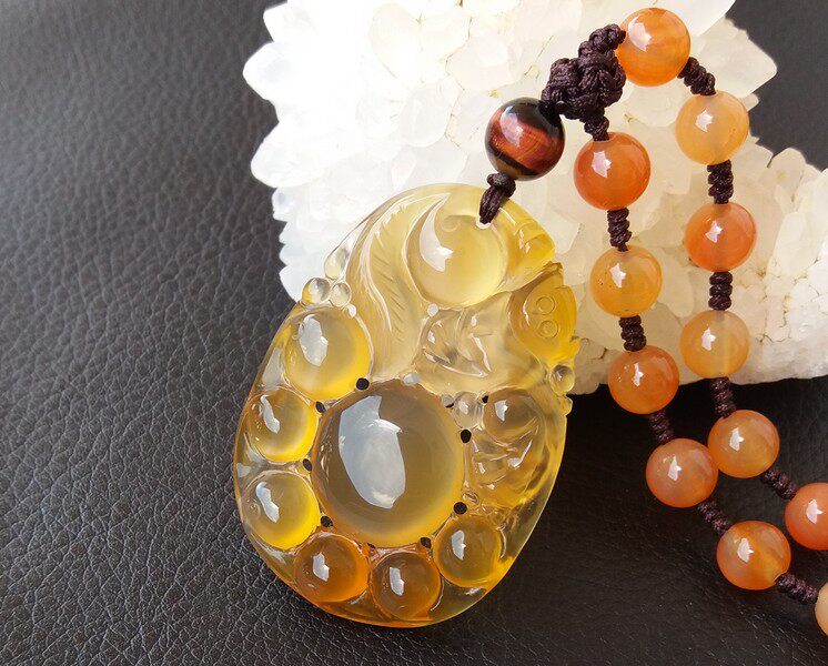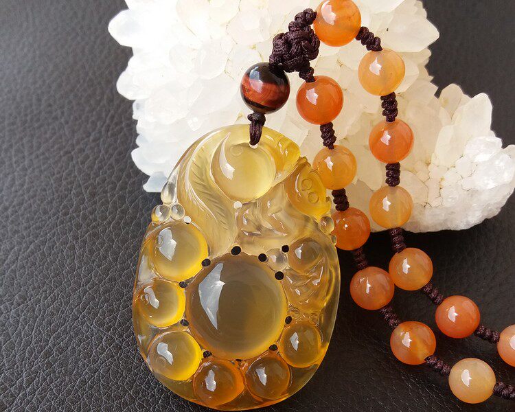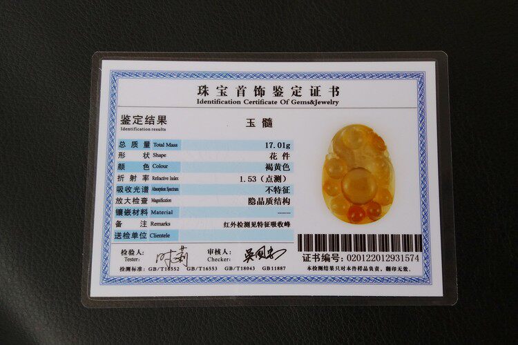 【玛瑙说】马料纯天然原色无烧高冰黄玉髓吊坠女福禄寿猴 带证书