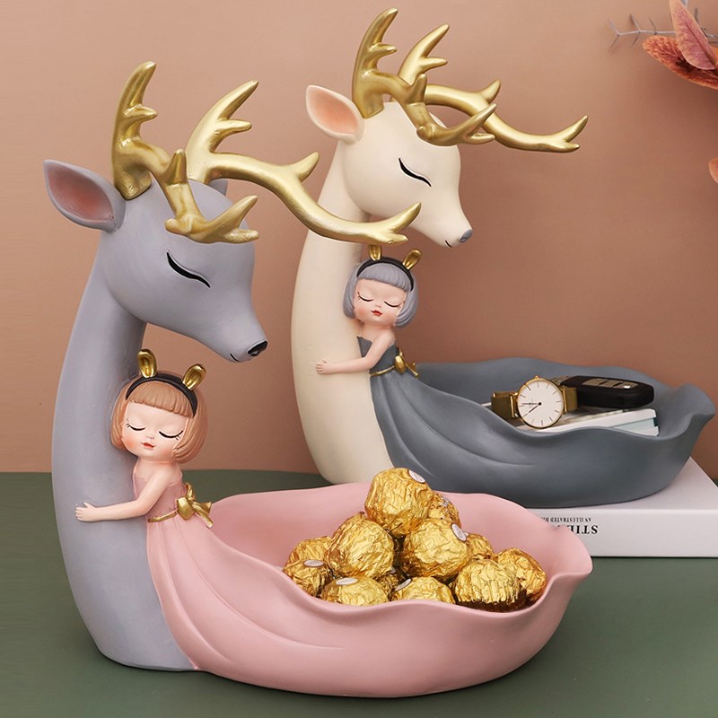 瑾礼 创意新款入户玄关麋鹿之约钥匙收纳摆件轻奢风高档客厅桌面