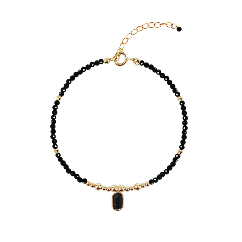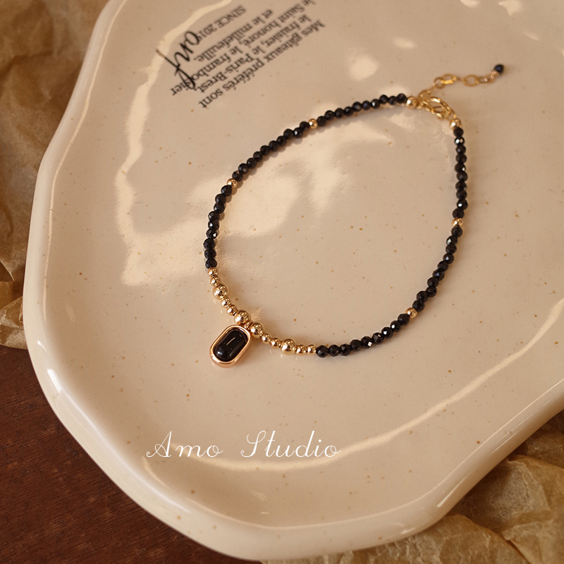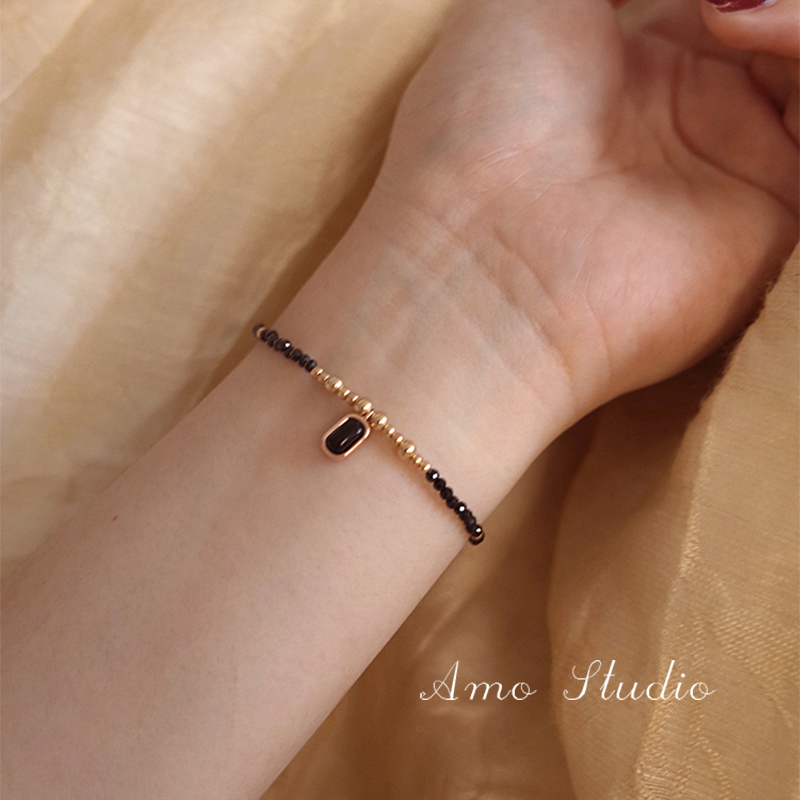 AMO黑金派对黑尖晶金珠细手链法式复古简约小众精致转运串珠手饰