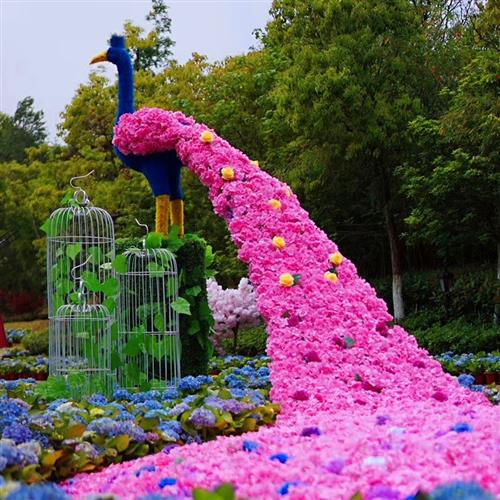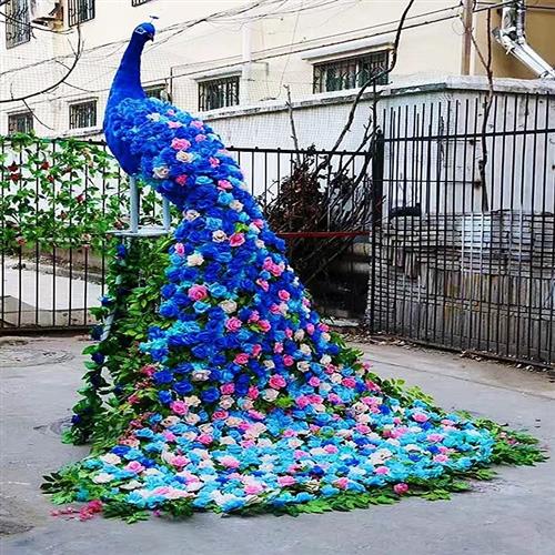 大型仿真花艺孔雀户外花园婚礼装饰房地产别墅园林景观玻璃钢雕塑