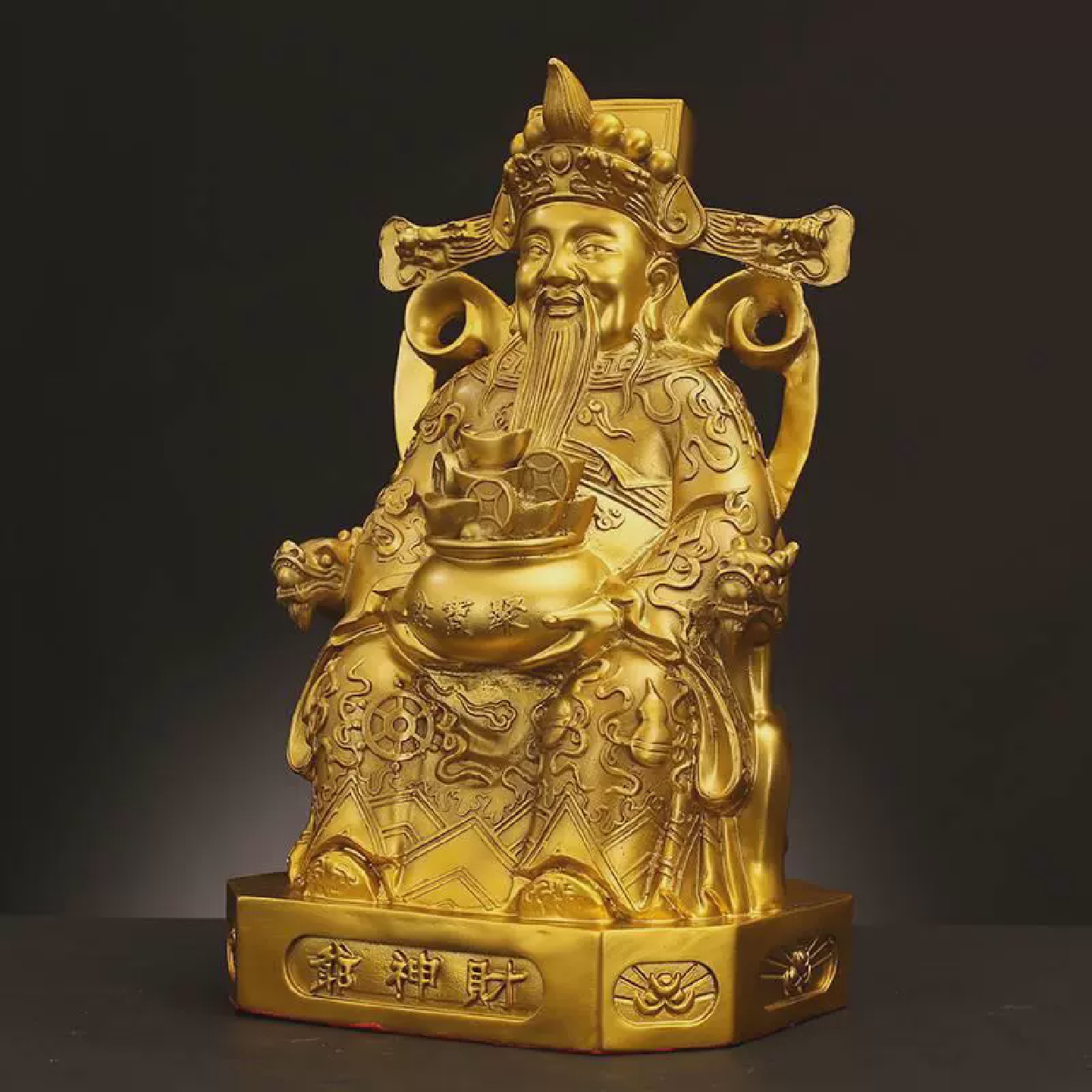财神爷神像客厅摆件供奉家用店铺黄铜装饰品办公室开业送礼铜财神