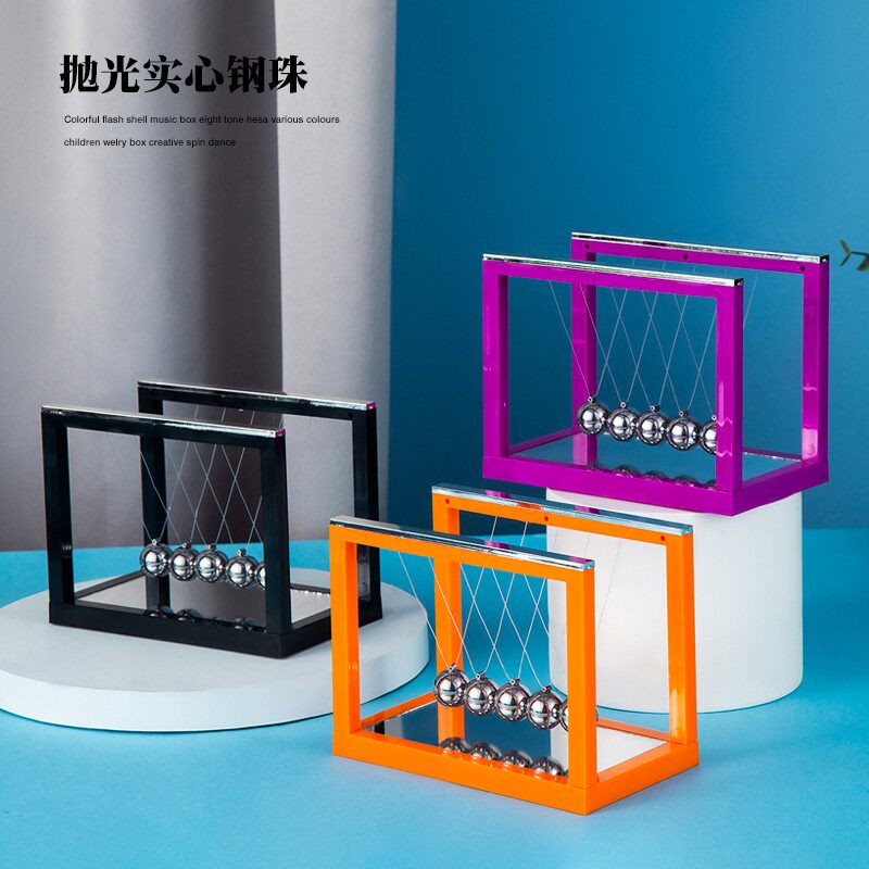 黑白色几何框架牛顿摆物理力量传递碰撞平衡球模型送老师学生礼物