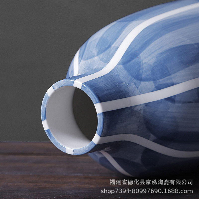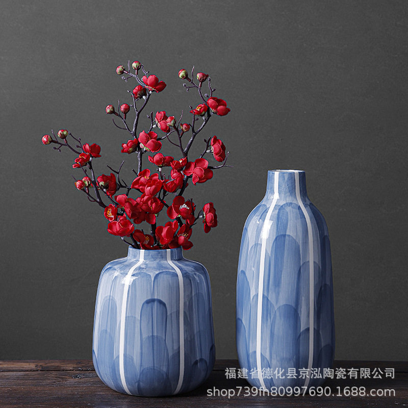 蓝色陶瓷花瓶摆件新中式客厅玄关酒柜餐桌干花插花电视柜摆设家居