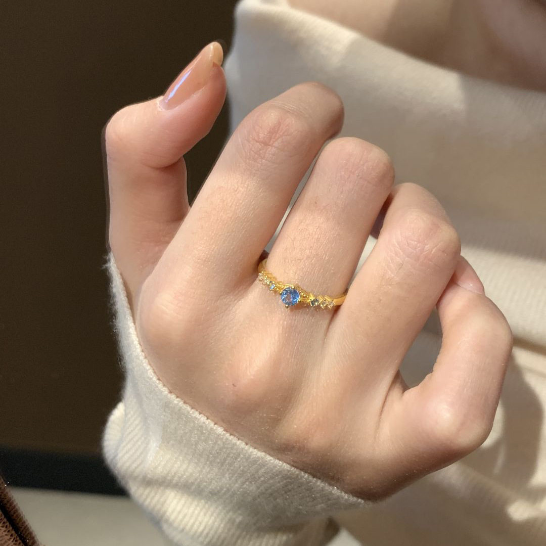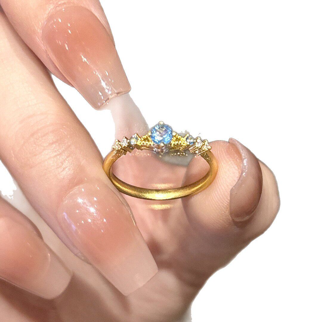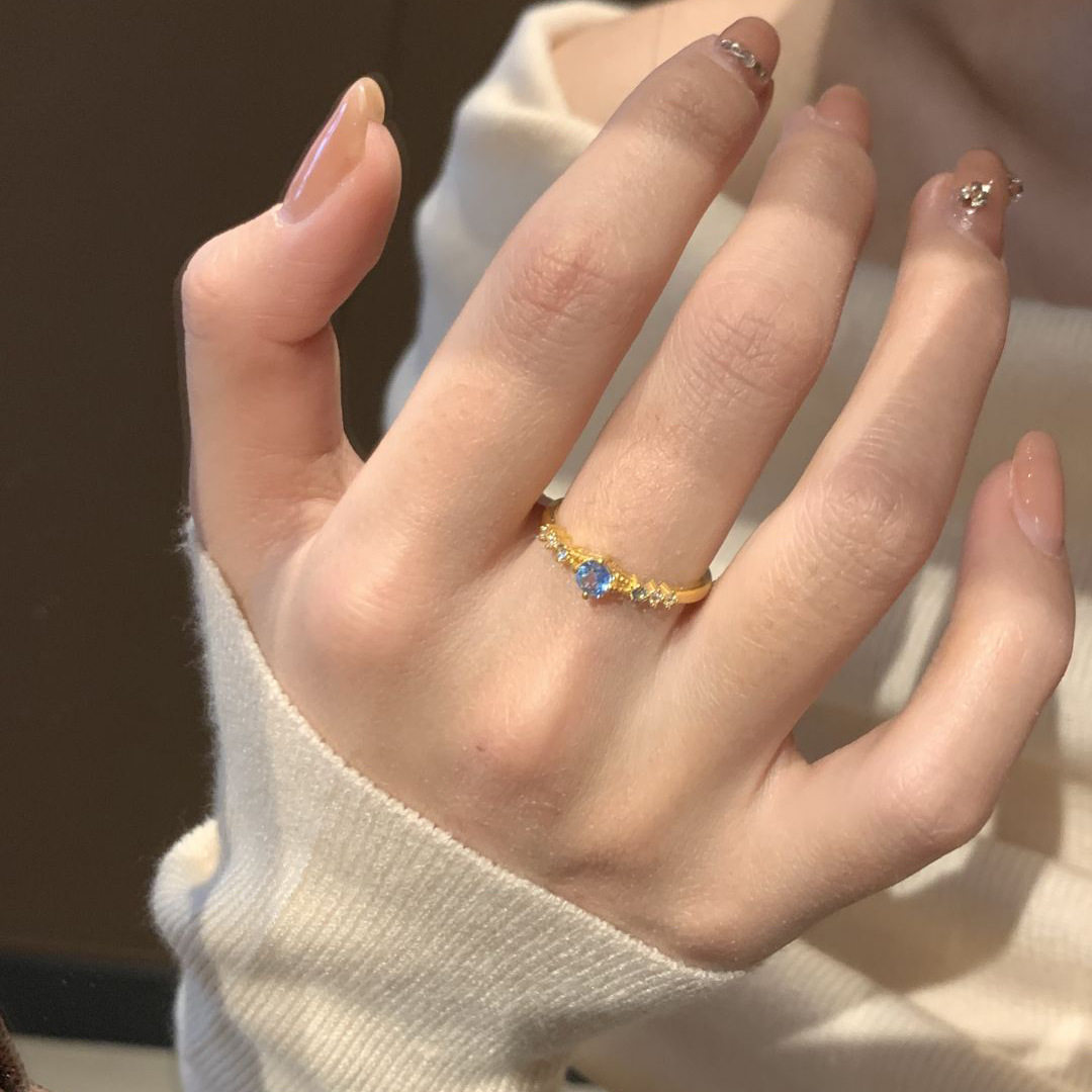 【蓝色幻想】时尚轻奢蓝色锆石镶嵌戒指女小众镶钻高级感指环手饰