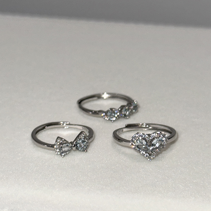 方糖家 方糖家天然海蓝宝纯银戒指小众设计气质感甜美轻奢女戒