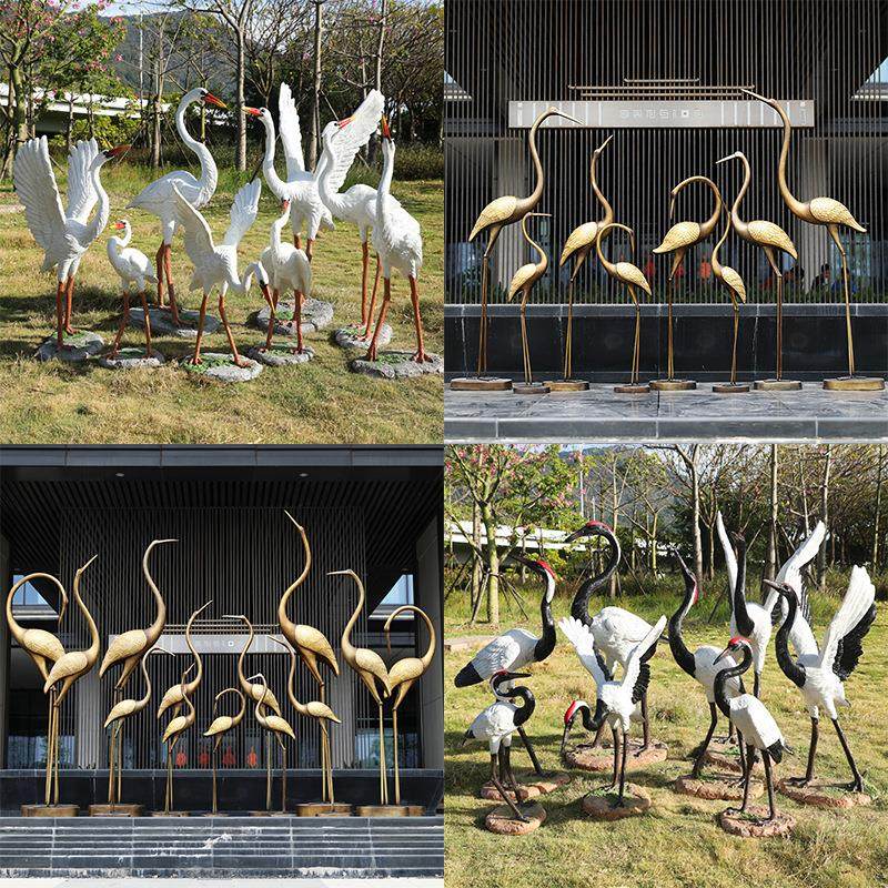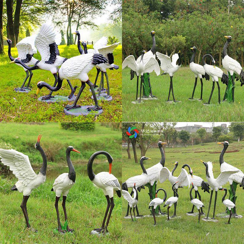 仿真仙鹤摆件户外玻璃钢白鹭鸟类雕塑园林庭院小区水池景观装饰品
