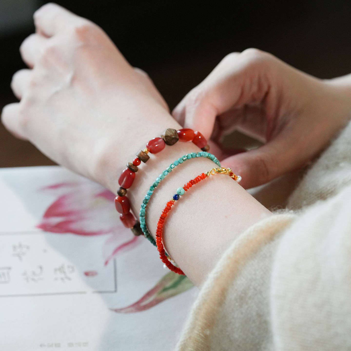 shannai原创「琢迹」新中式天然南红玛瑙小米珠手串手链女款配饰