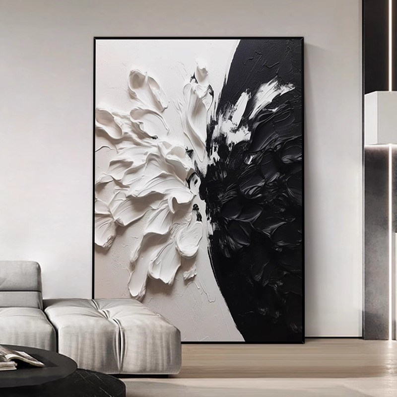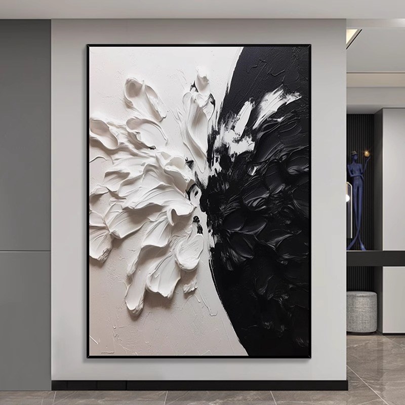 极简侘寂风现代黑白抽象肌理手绘油画客厅卧室软装饰品玄关高级感