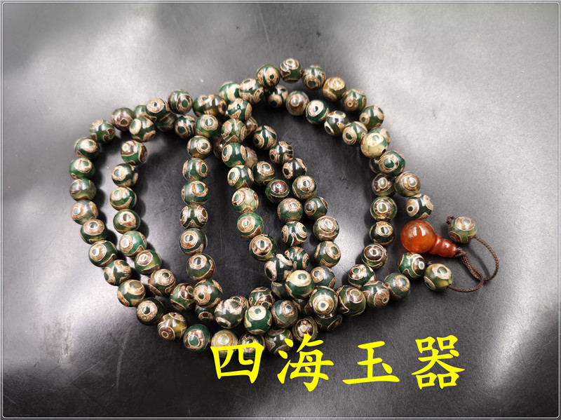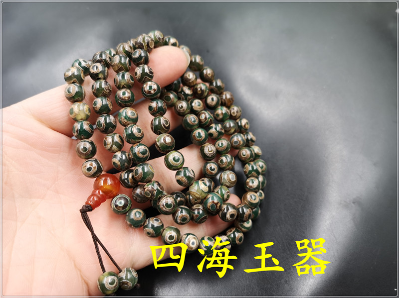 8毫米108颗绿色三眼天珠玛瑙毛衣链 佛珠念珠 可缠绕手链手串