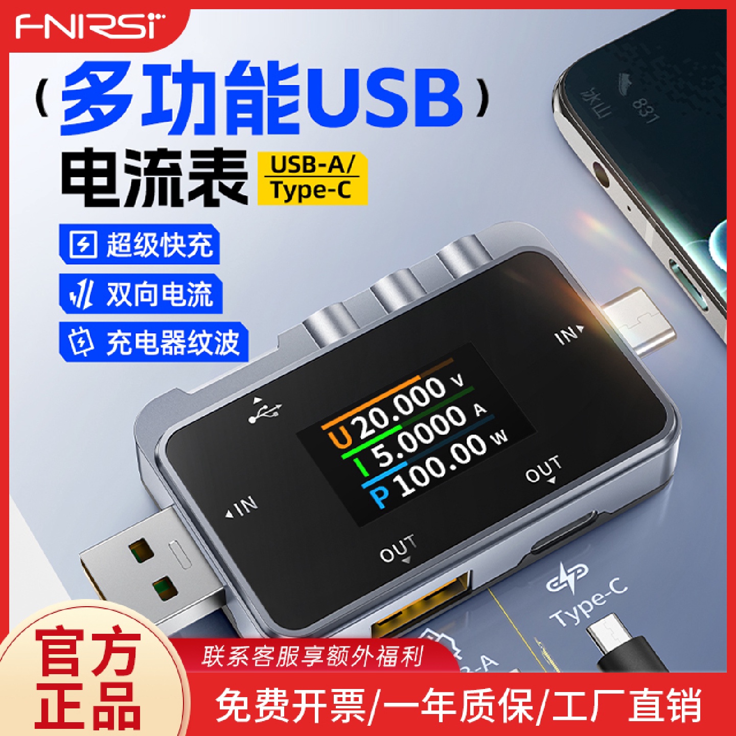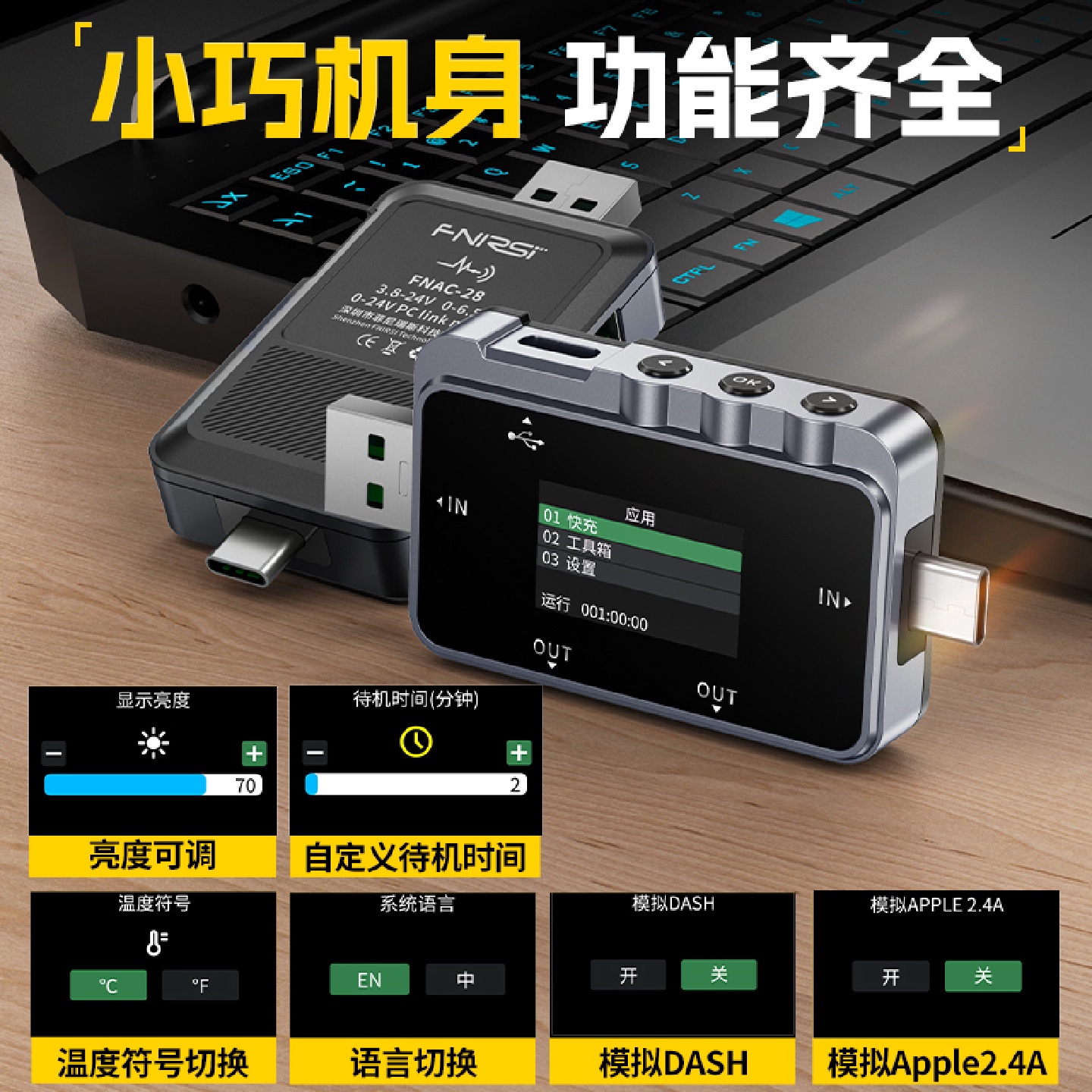 llFNAC-28USB测试仪电压电流表TypecPDQC快充协议检测诱骗
