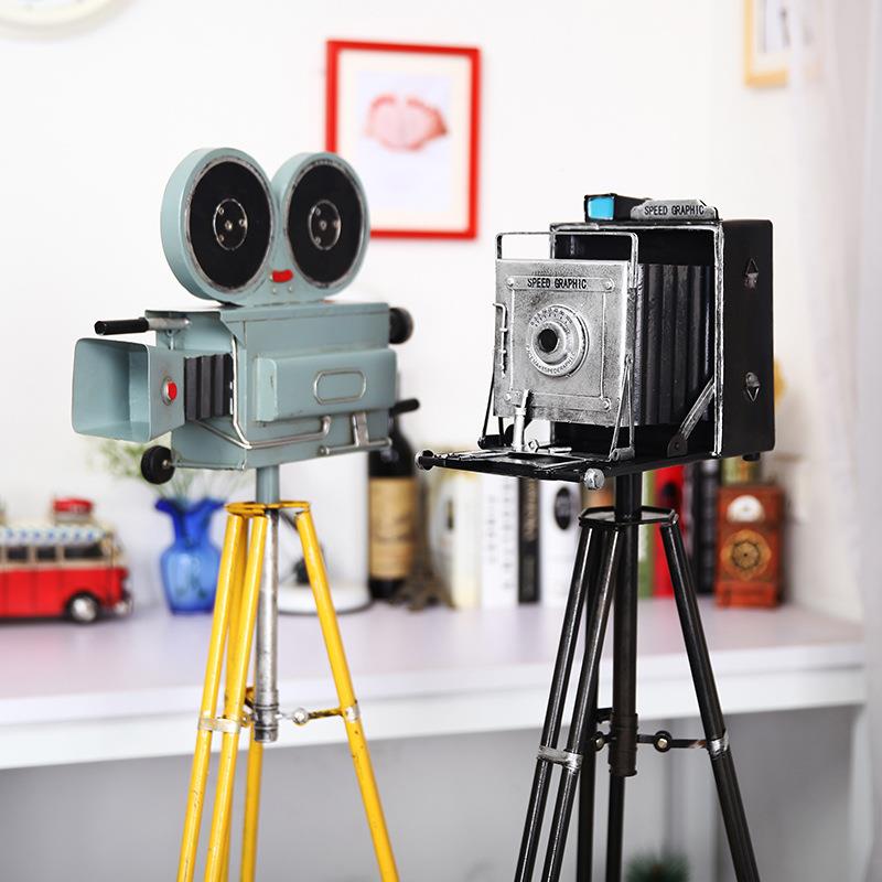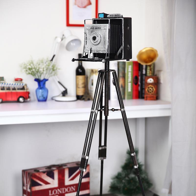 老式道铁艺落地三脚架PQC相机模型工饰艺品摄摆件复古装品影具