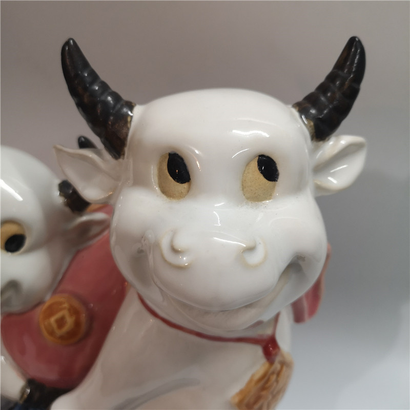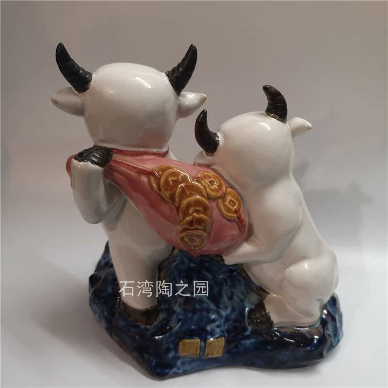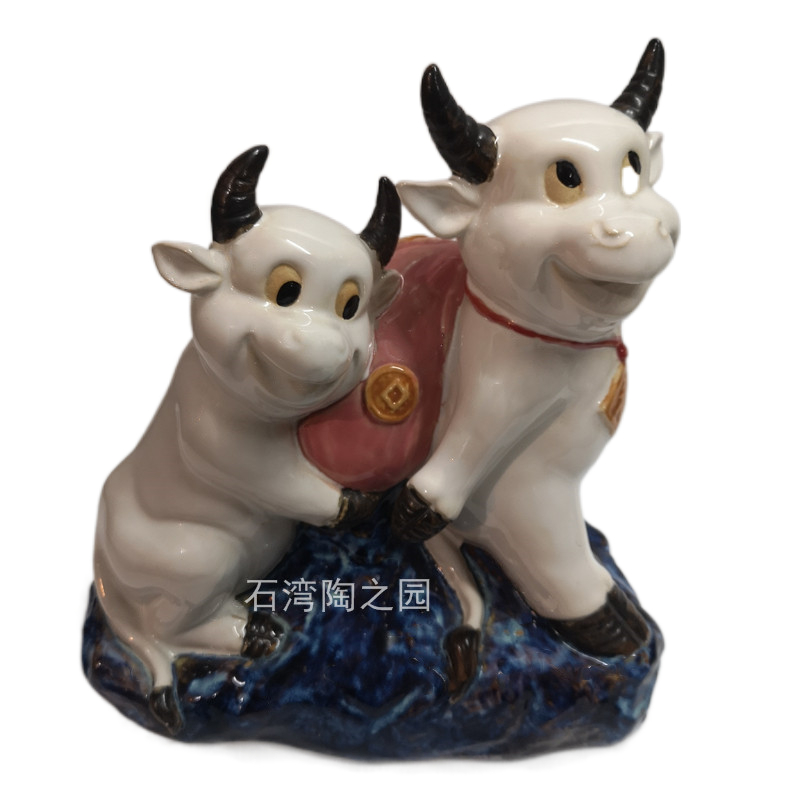 石湾陶瓷公仔潘柏林印章招财进宝十二生肖牛家居装饰摆件送礼动物