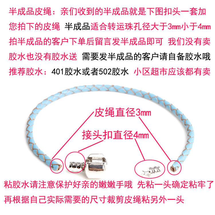 欧美流行风基础手链牛皮手链 可配3D硬金银转运珠 大尺寸