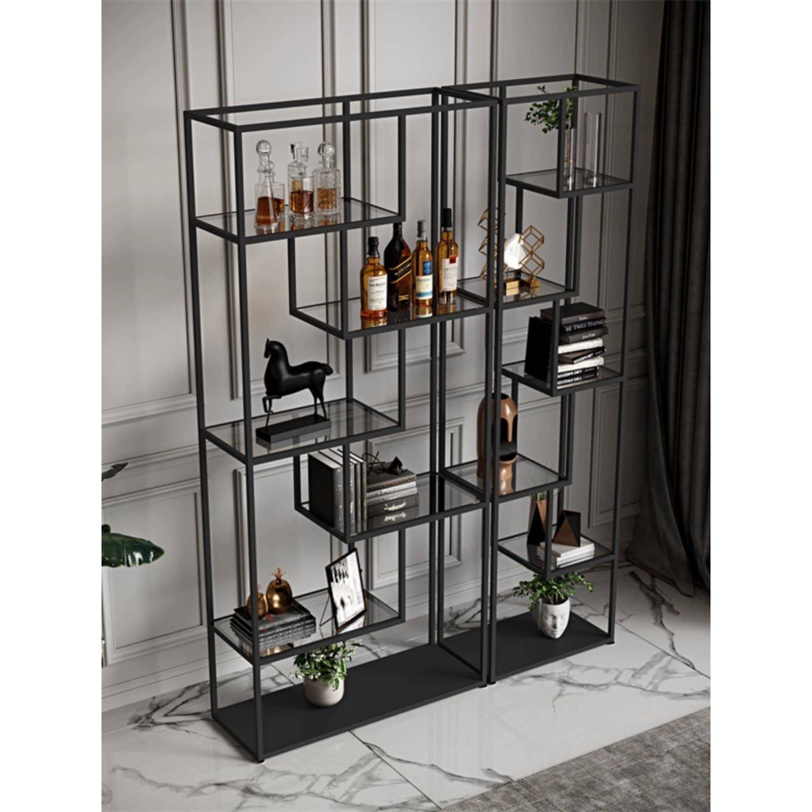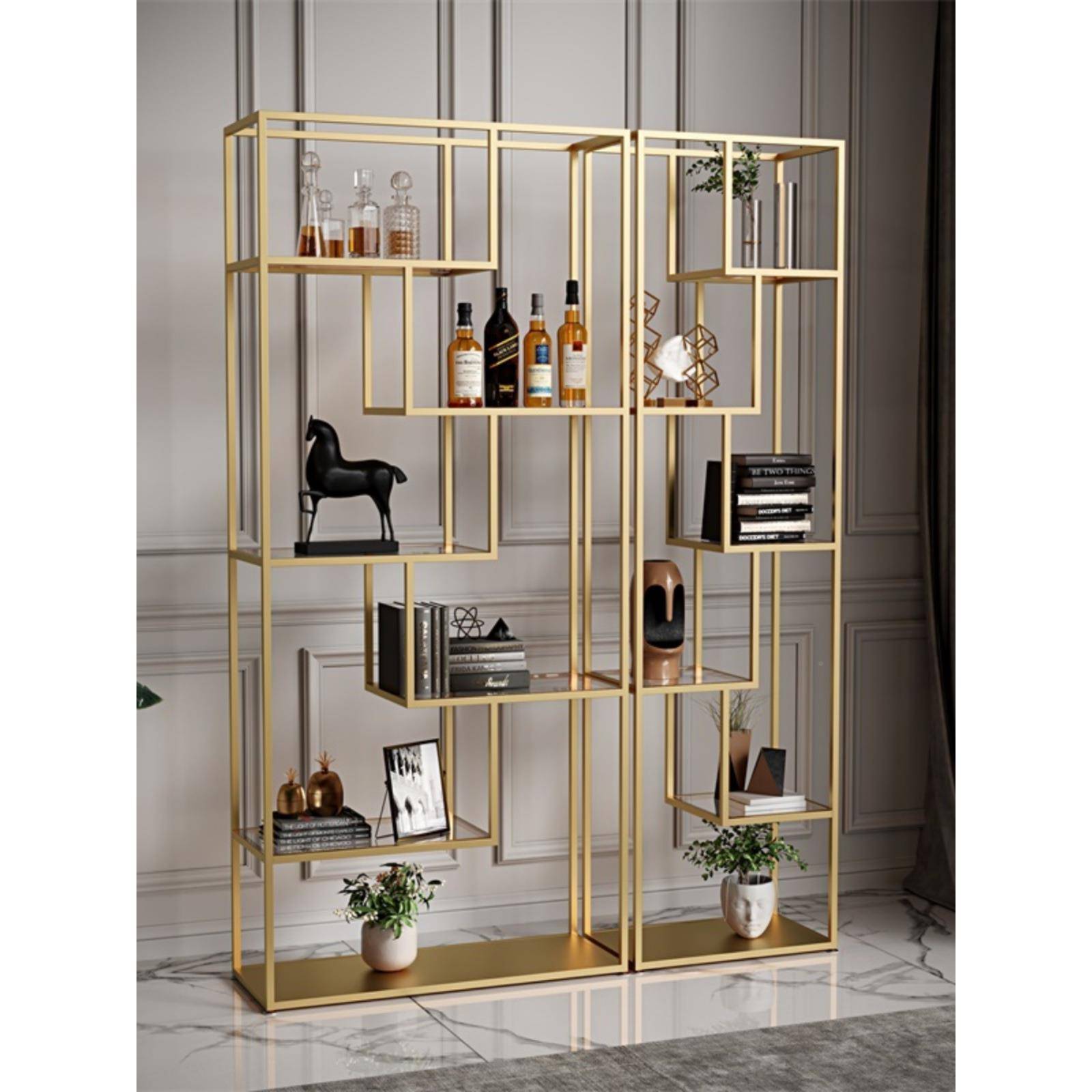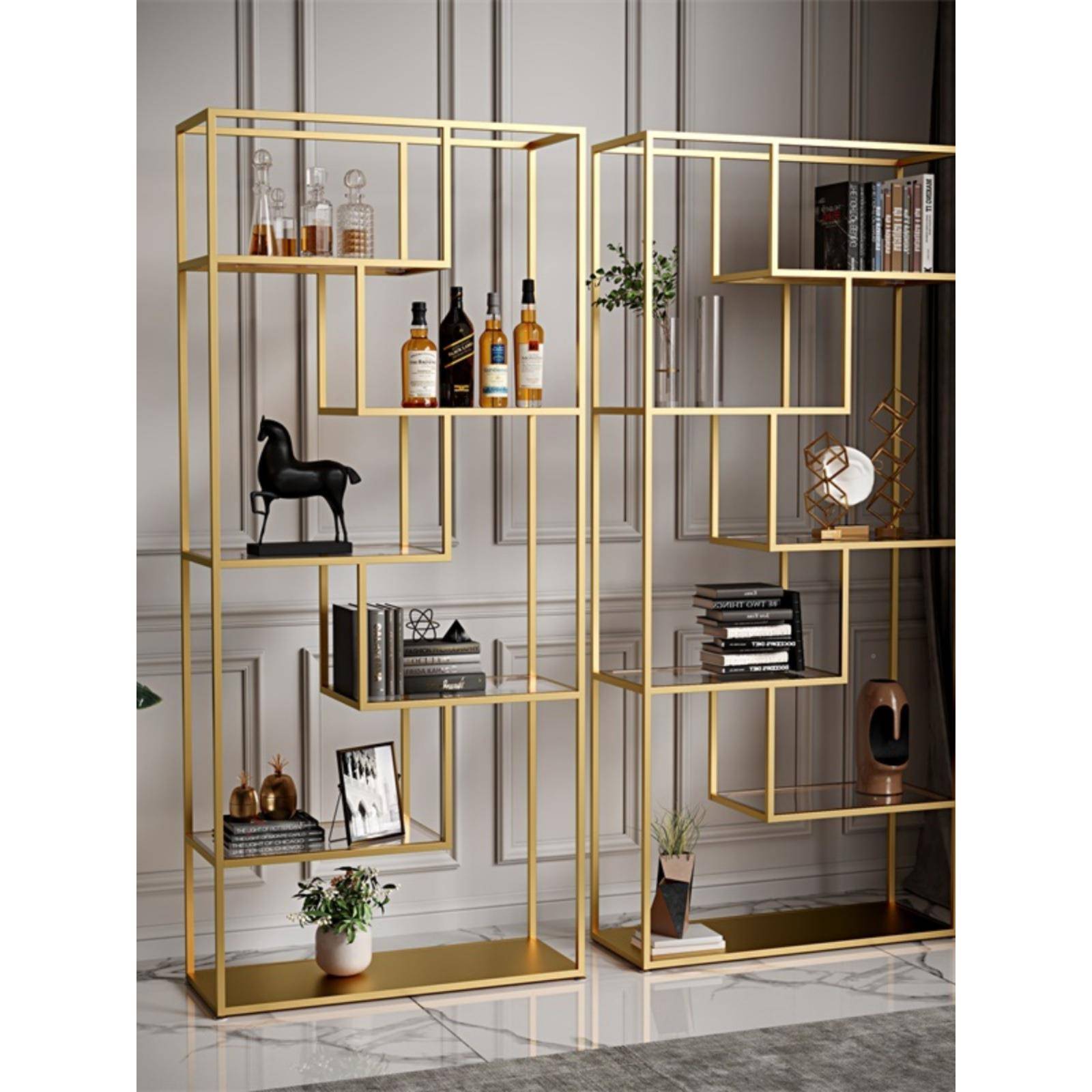 尚豪轻奢置落架地客厅办公约室06978996铁艺物简隔断钢化玻璃展示