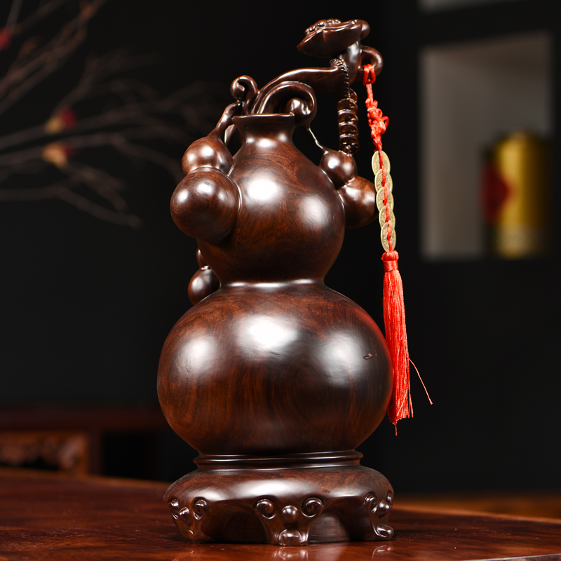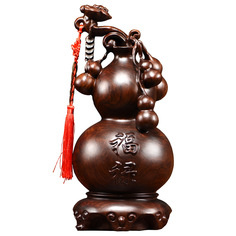 黑檀木雕福禄如意葫芦摆件实木客厅家居玄关电视柜装饰红木工艺品