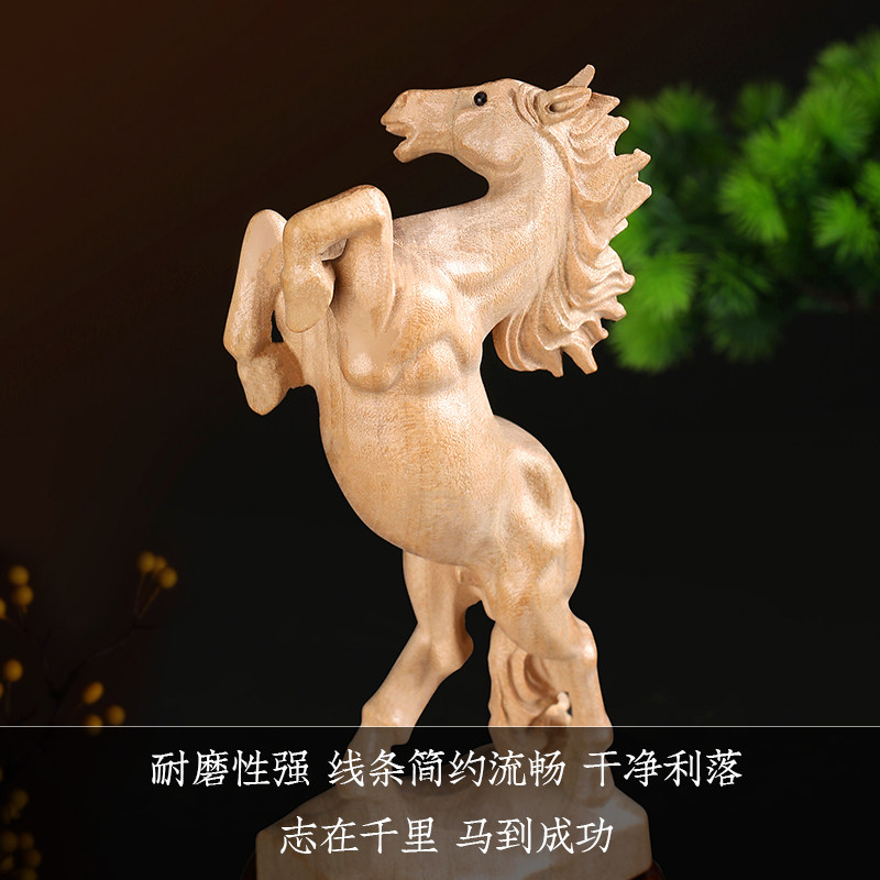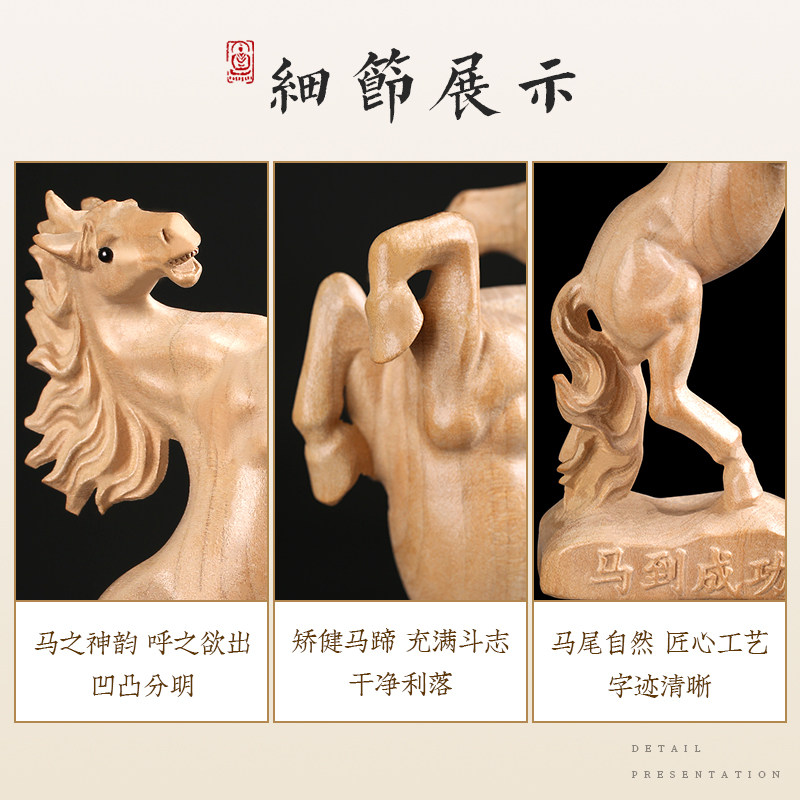 桃木雕马到成功摆件生肖马实木雕刻办公室桌面摆设桃木工艺品