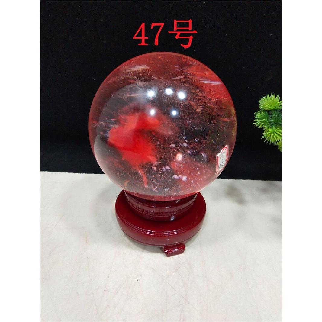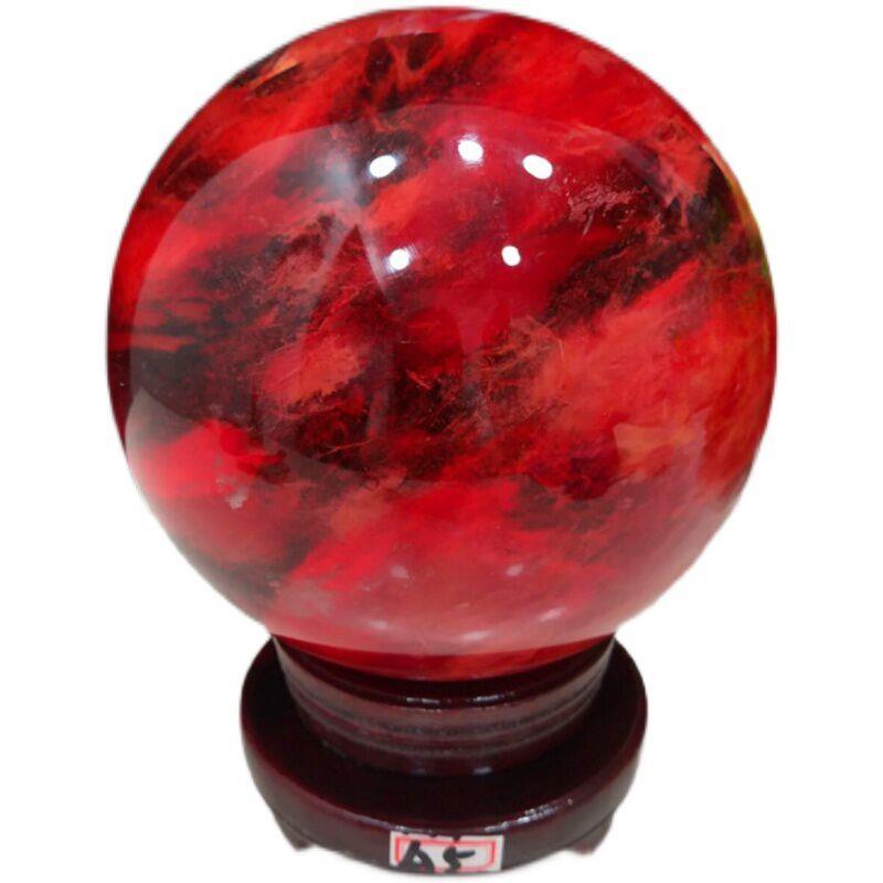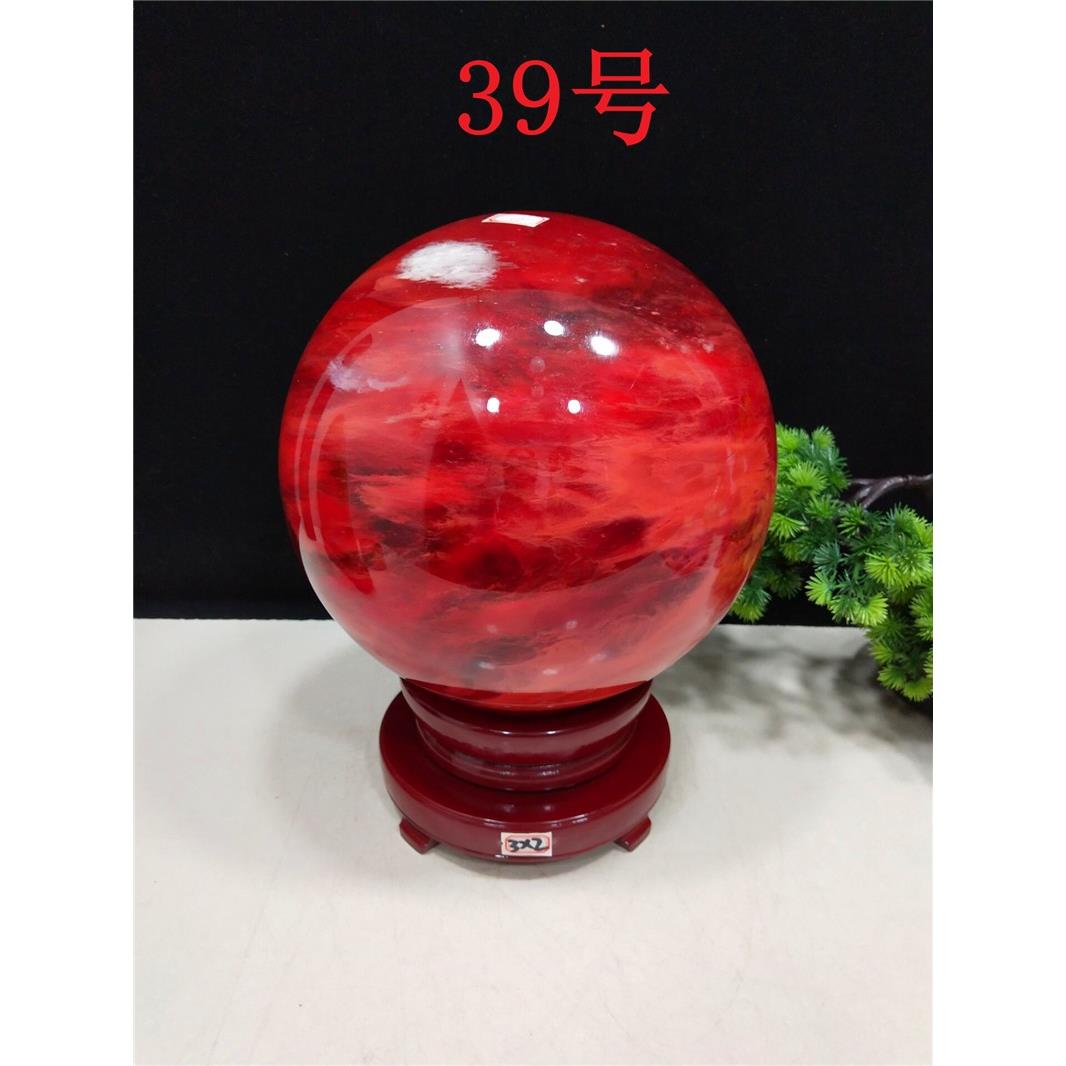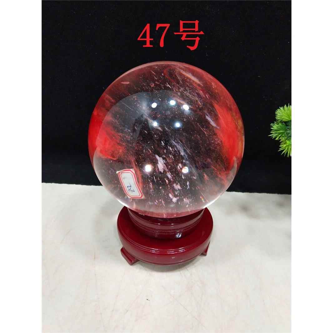 天然水晶球摆件红色风水球原石客厅办公室居家装饰品收藏礼品奇石