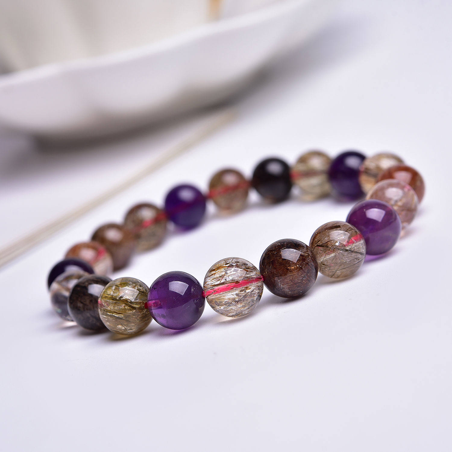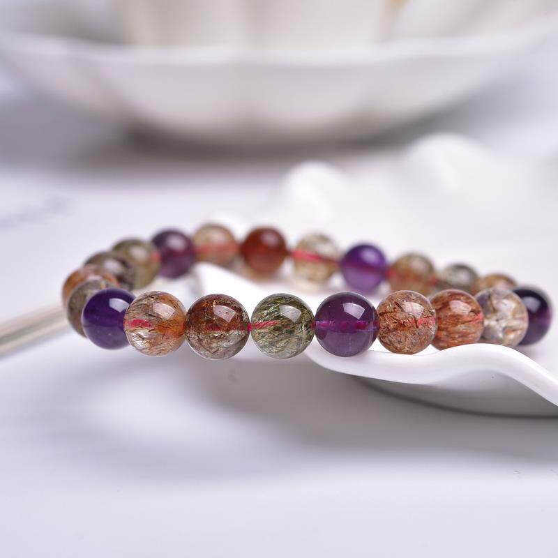 走进东非鹏飞珠宝天然水晶时尚简约黑金超七手串手工梦幻彩色单圈