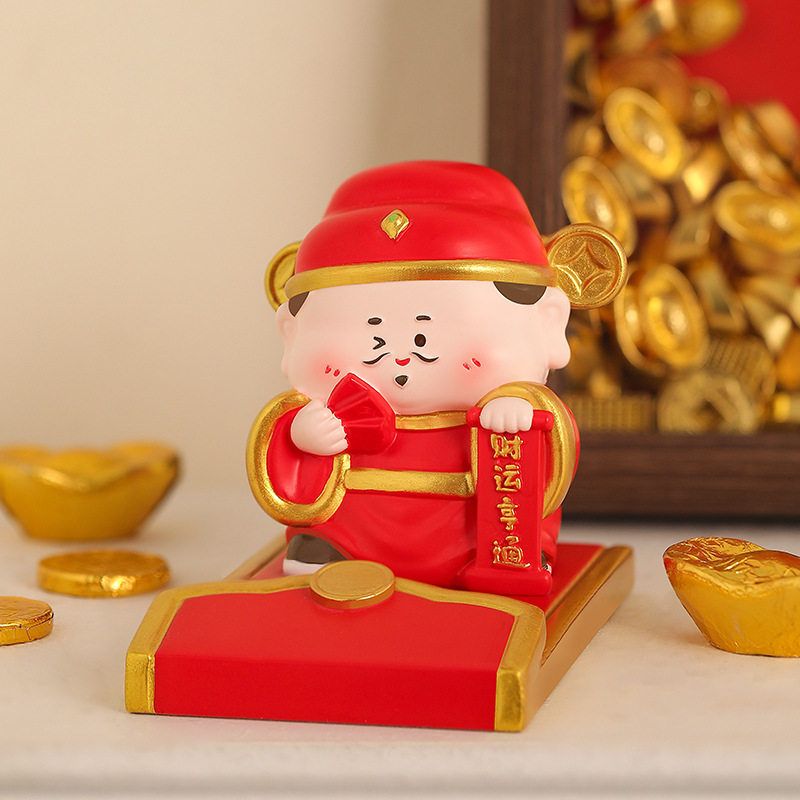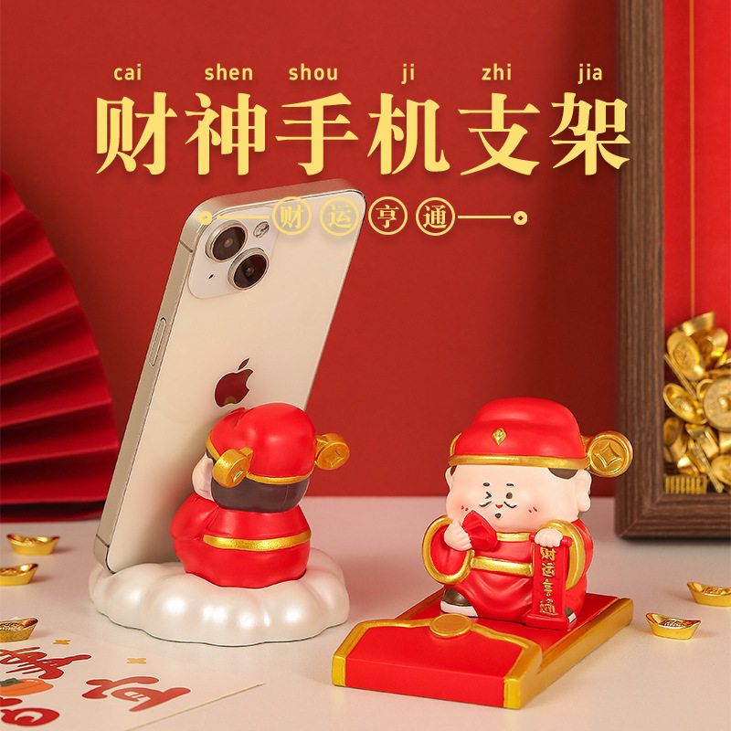 新款创意红包财神手机支架树脂摆件桌面装饰懒人追剧神器新年礼品