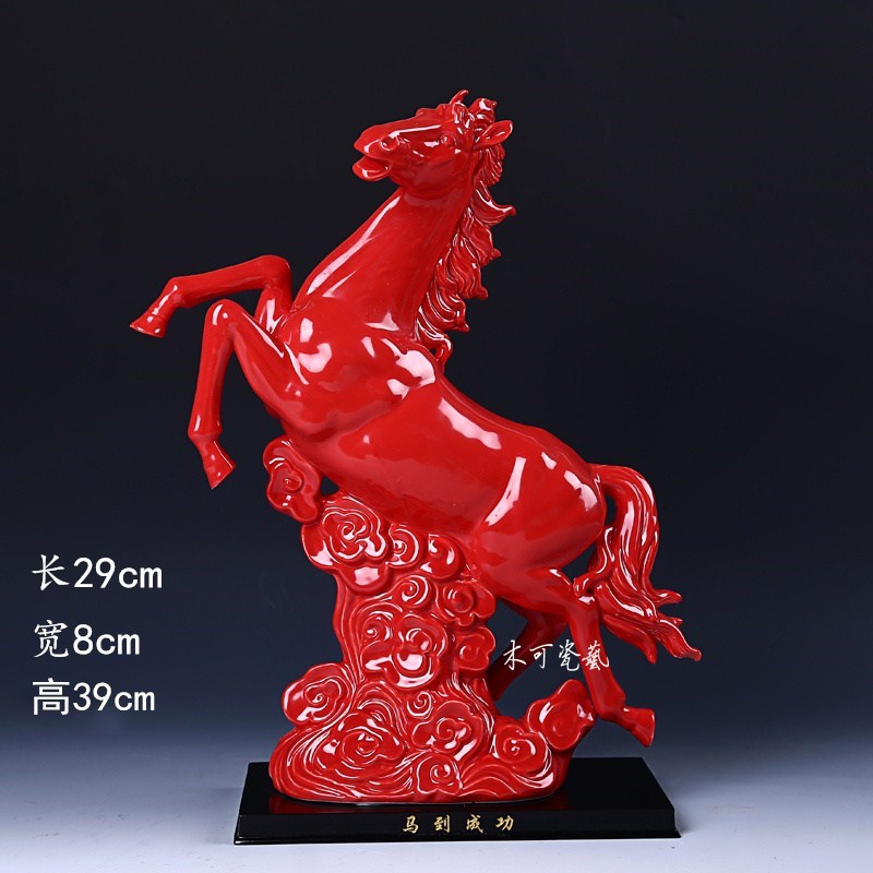 陶瓷红马摆件12生肖工s艺品客厅玄关办公室招财风水红色马摆设