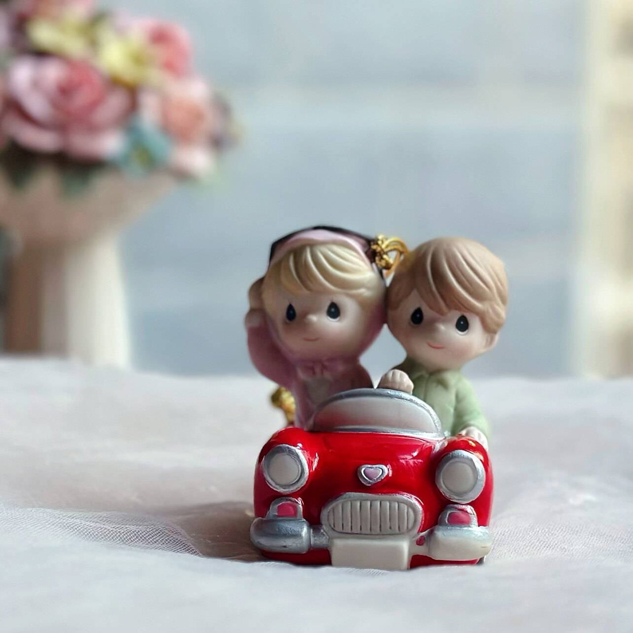持续瓷生 出口水滴娃娃小号白色敞篷婚车情侣红色陶瓷汽车挂摆件