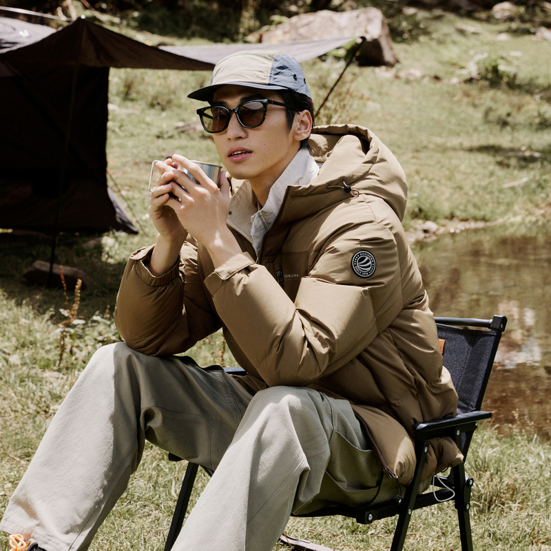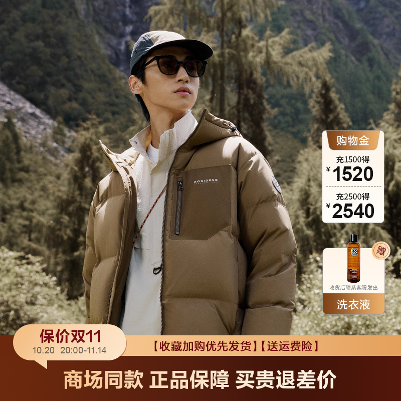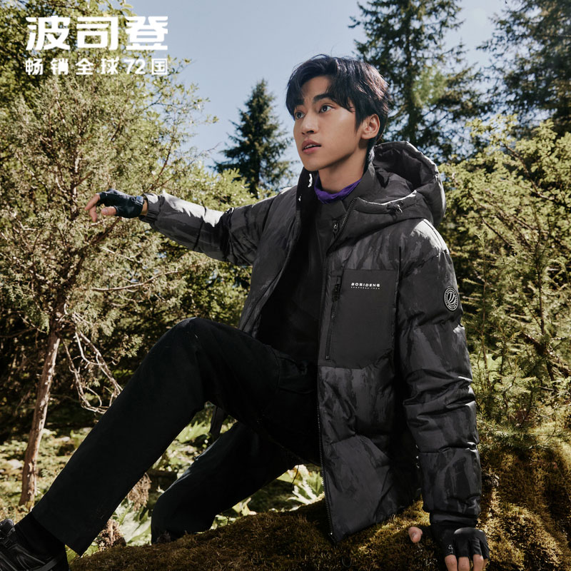 波司登羽绒服男秋冬爆款青年时尚印花短款加厚连帽露营面包服外套
