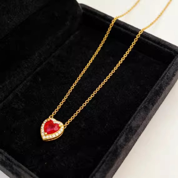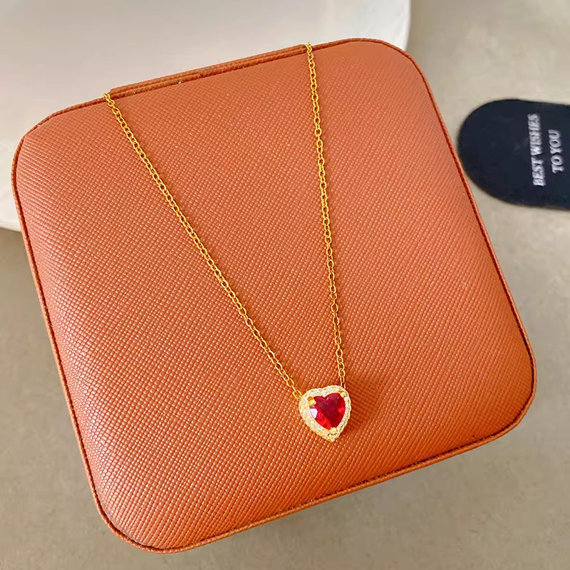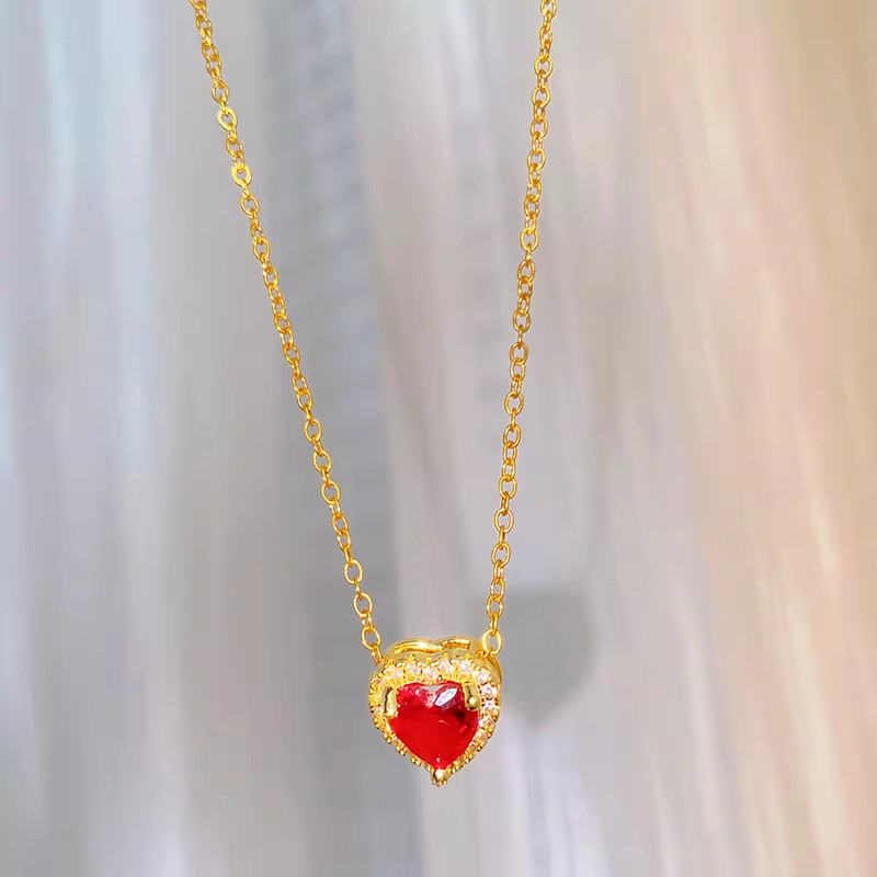 2026新款轻奢微镶锆石红色爱心项链小众锁骨颈链高级气质甜美百搭