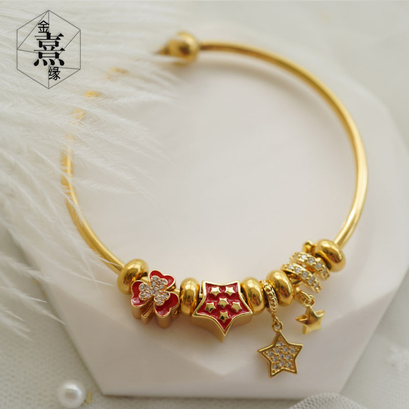 新年旺旺红色幸运星手链套装送女友礼物3d硬金可穿diy散珠星星