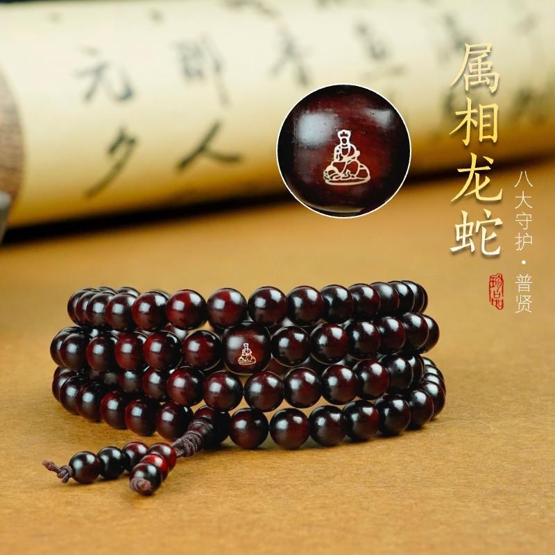 印度小叶紫檀镶银手串108佛珠男本命年女手链十二生肖龙蛇手饰