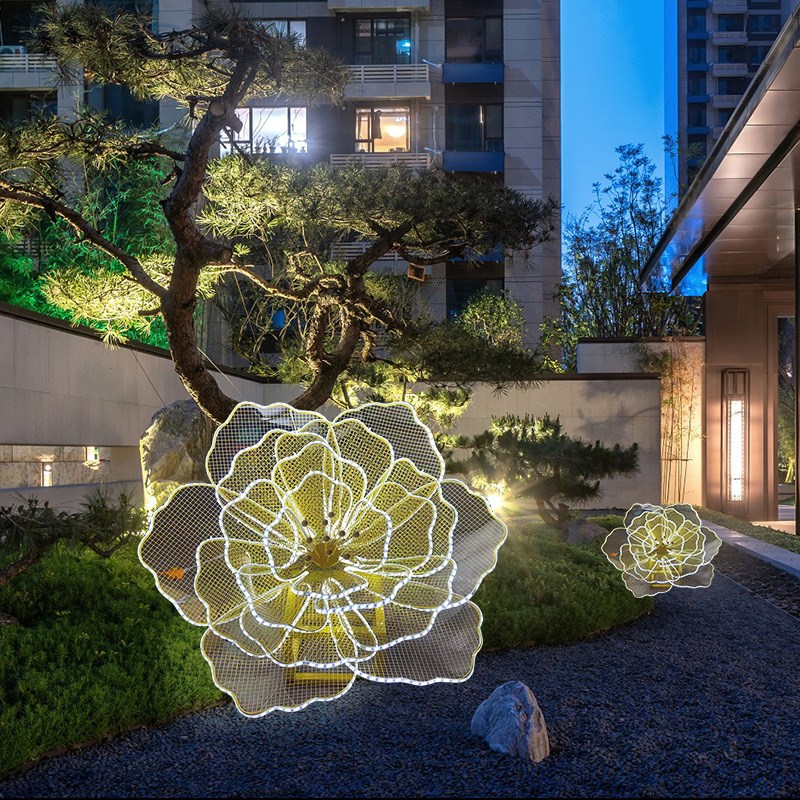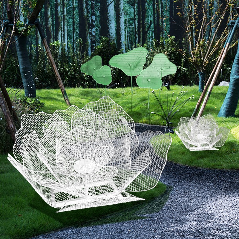不锈钢镂空花朵雕塑铁艺植物公园景区园林景观草坪U装饰品落地摆