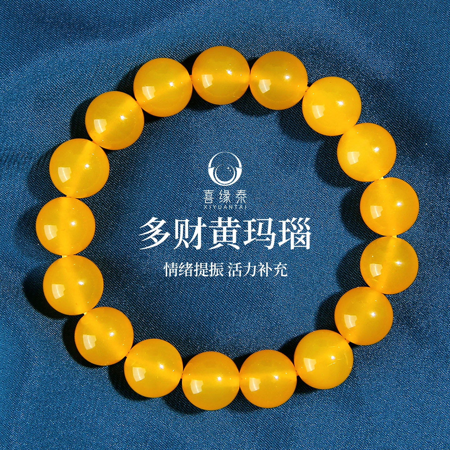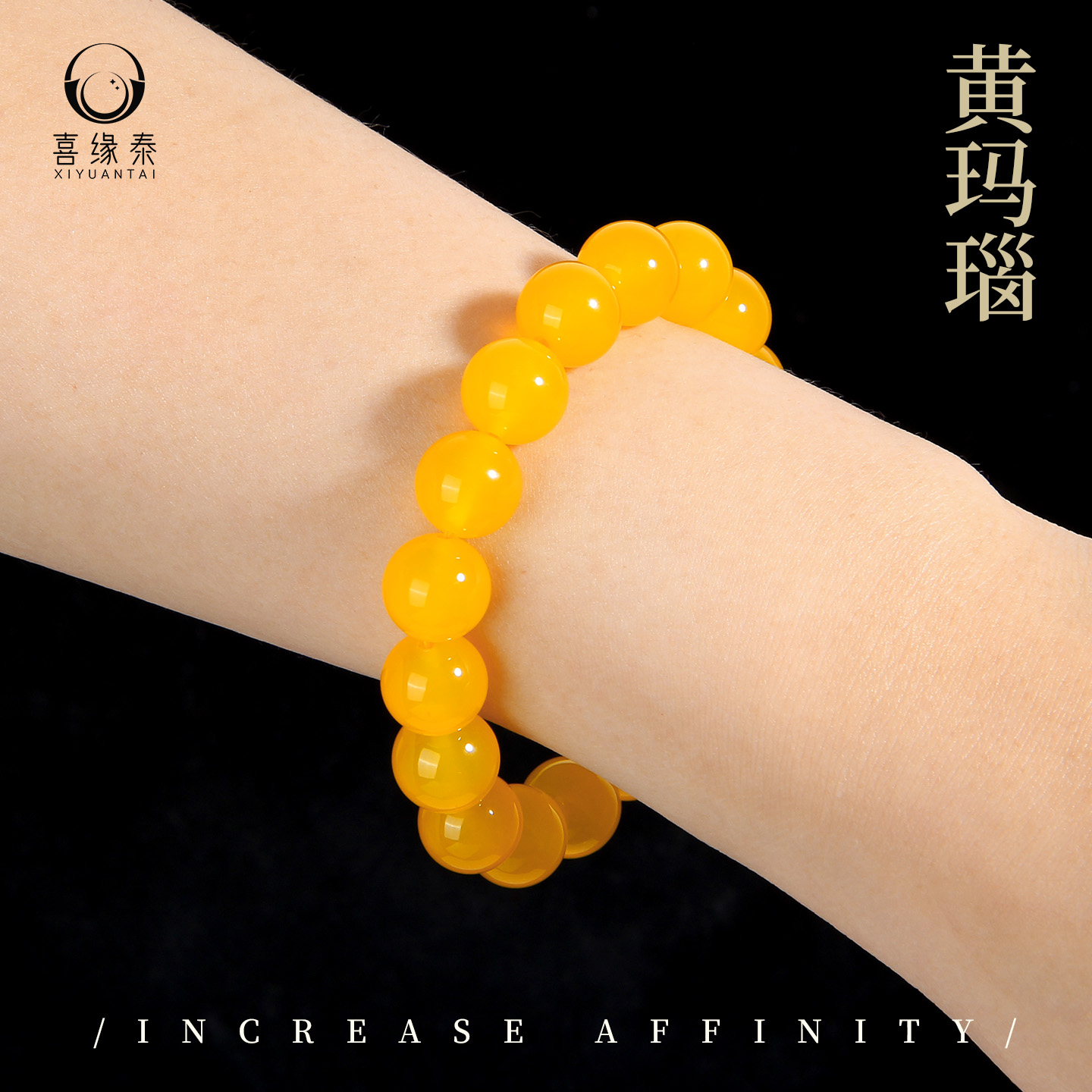 天然黄玛瑙手链女款时尚简约风手串精致转运珠七夕节日礼物送女友