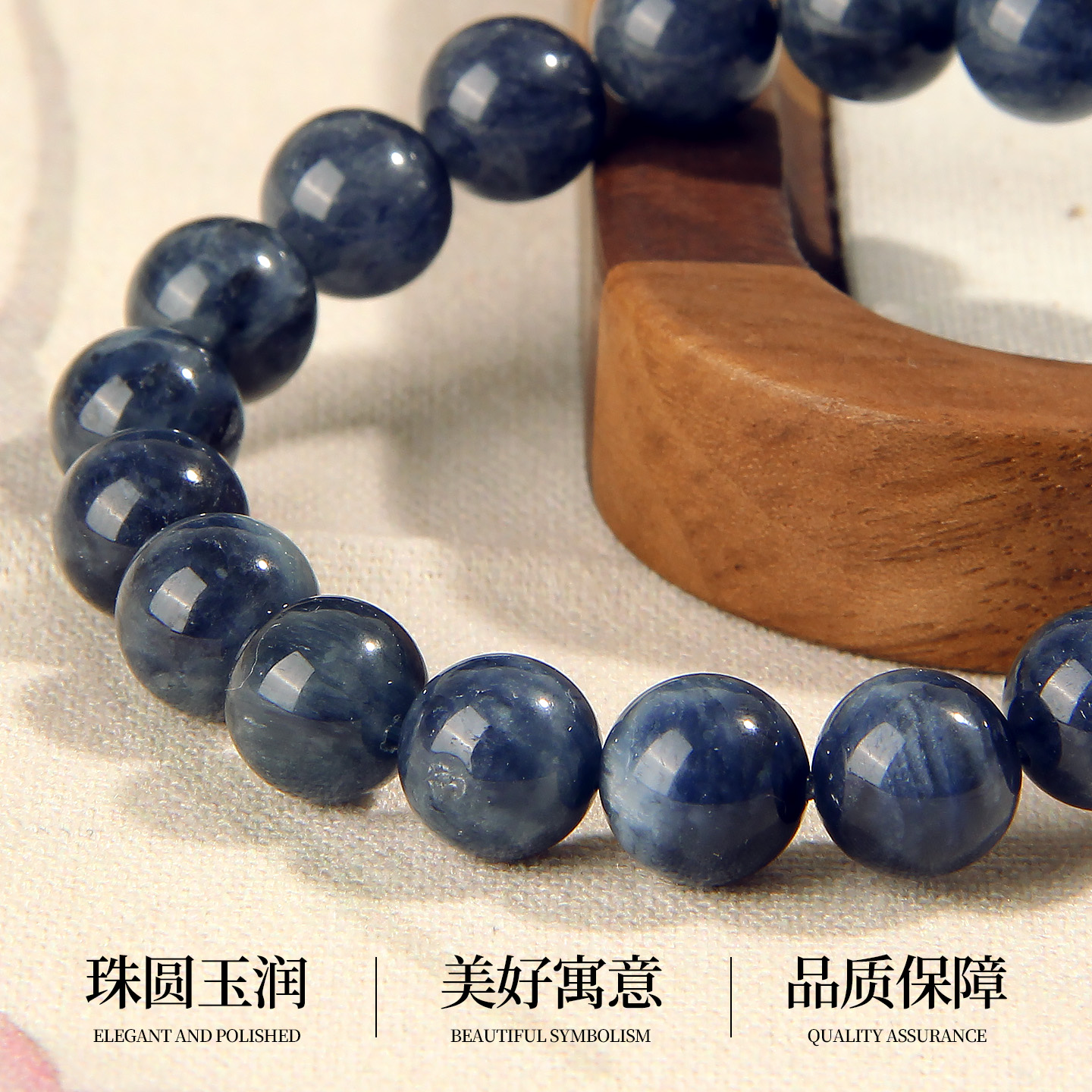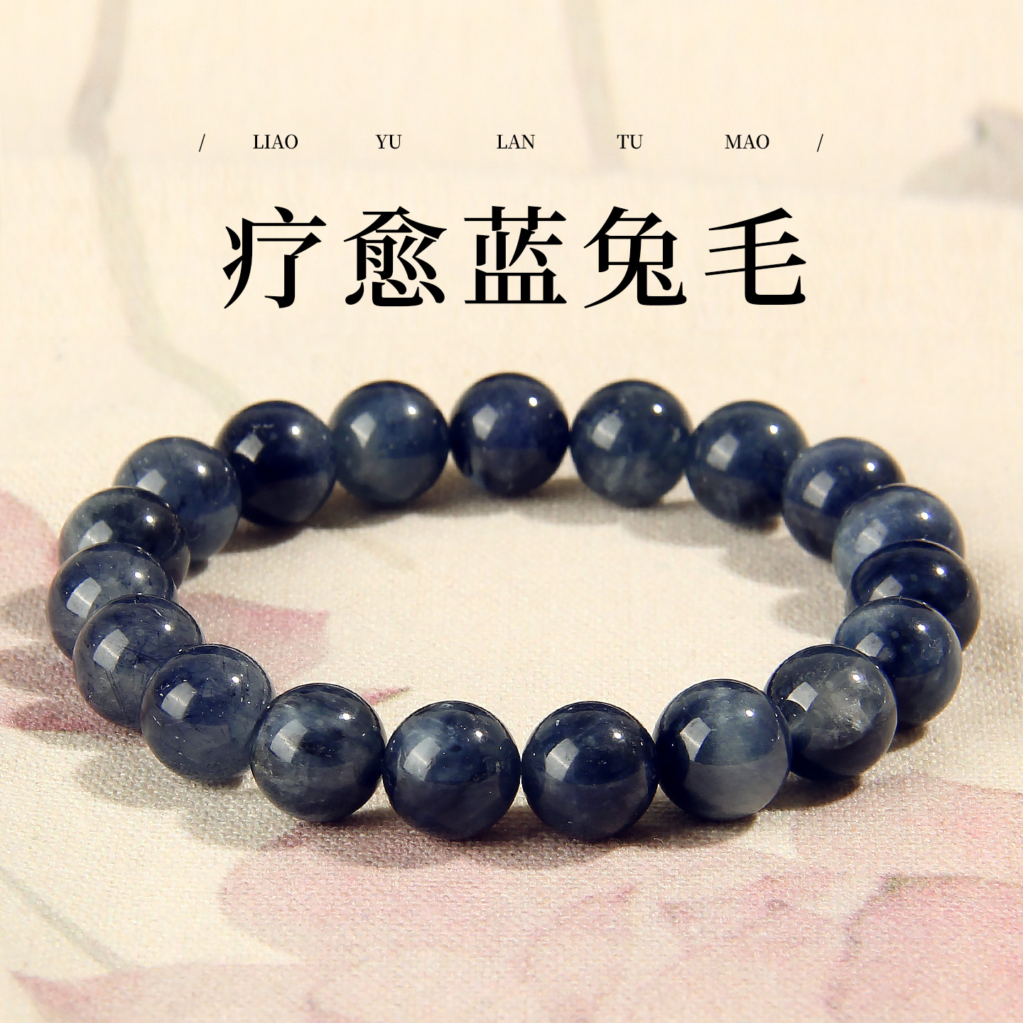 天然蓝兔毛手链蓝水晶单圈圆珠手串高级感女款七夕节日礼物送女友