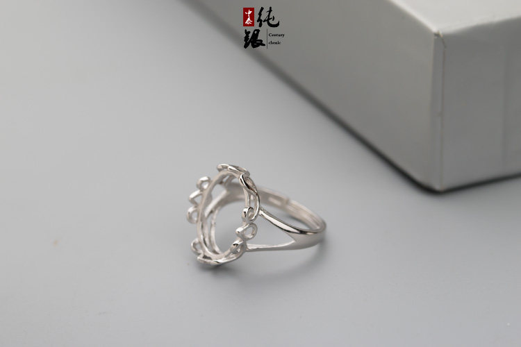 纯银925银复古戒指托空托定制diy镶嵌琥珀活口男女戒托包邮12*16