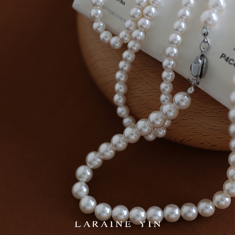 倪妮同款长款施家珍珠项链女正圆轻奢气质锁骨链颈链毛衣链