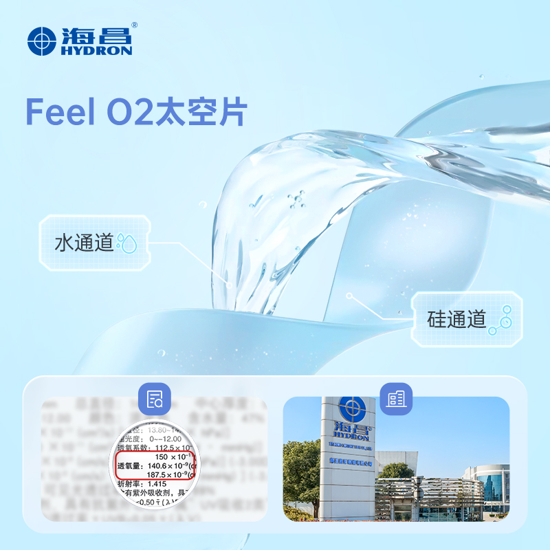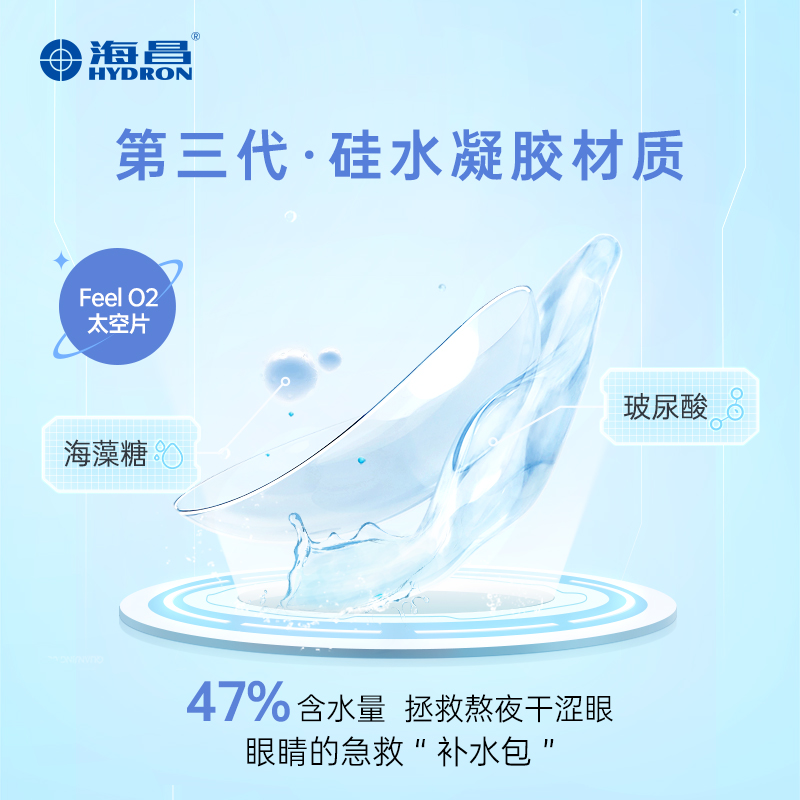 【双11预售付定 】海昌硅水凝胶FeelO2太空片月抛6片近视隐形眼镜