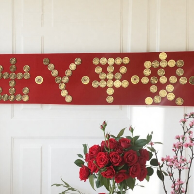 88枚五角铜钱金色硬币压门槛铺过门石贴出入平安红布装饰摆件模版