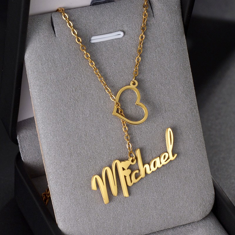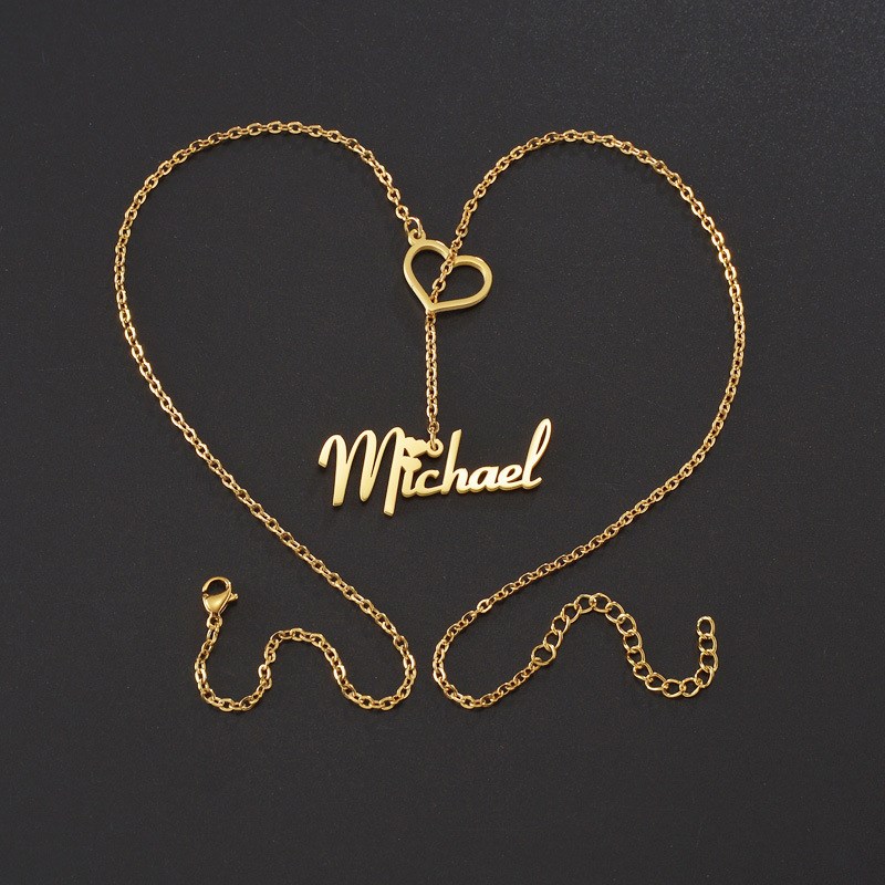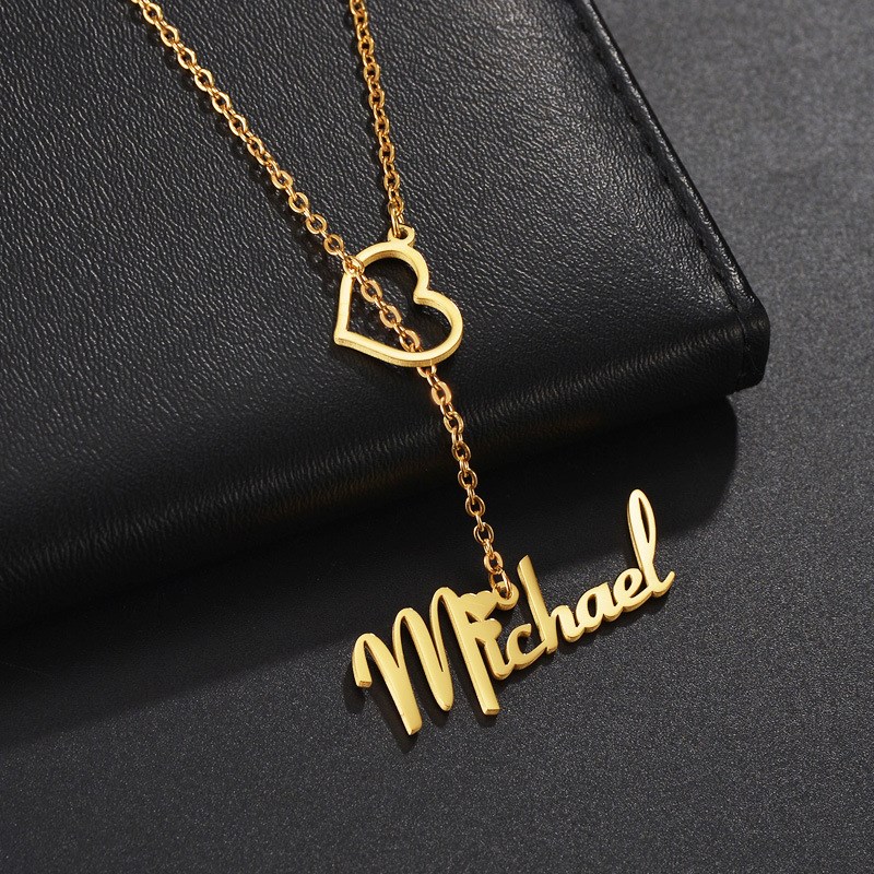 创意名字私人定 制镂空爱心英文字母不锈钢吊坠项V链女锁骨链饰品