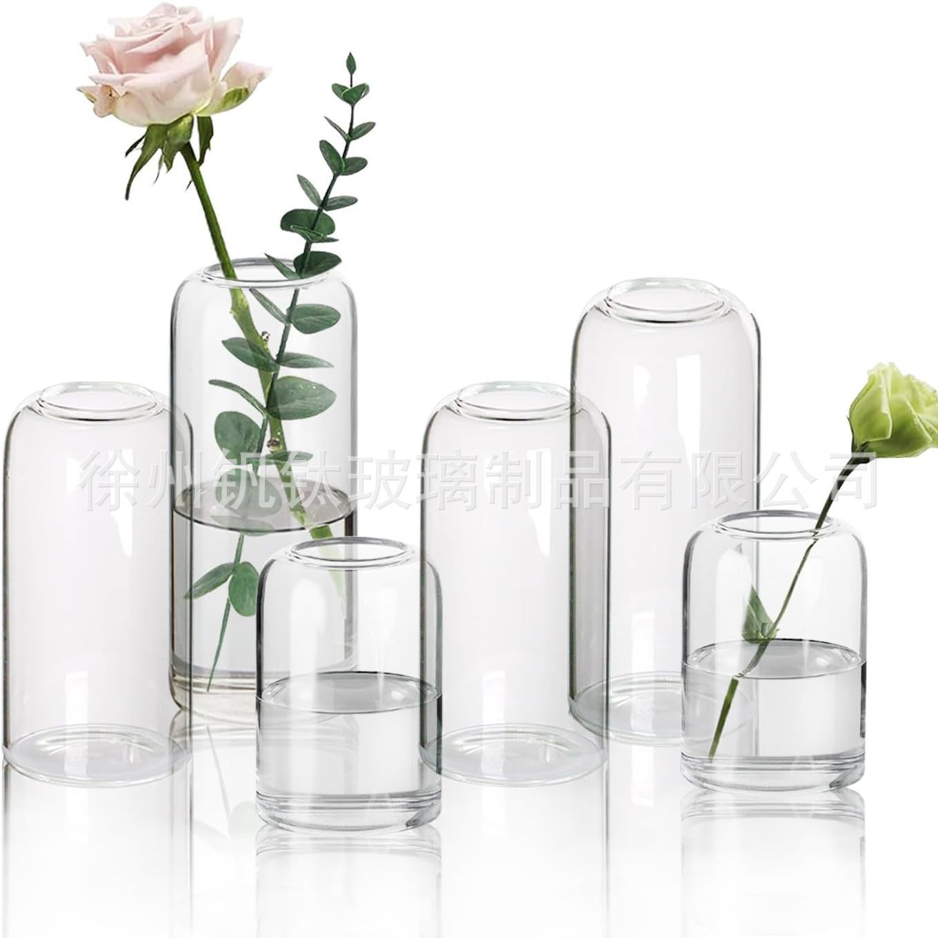 亚马逊同款高硼硅玻璃小口花瓶婚礼家居摆件花瓶直筒创意手工花瓶