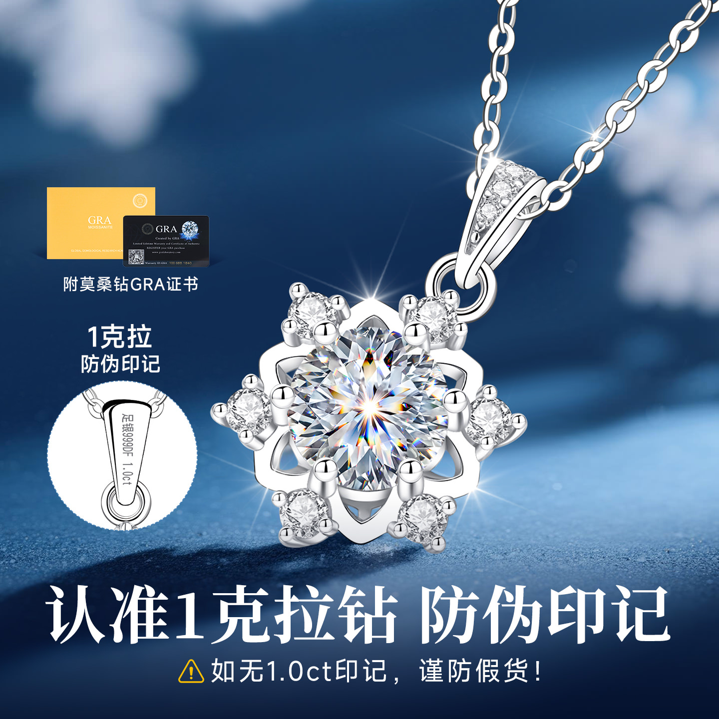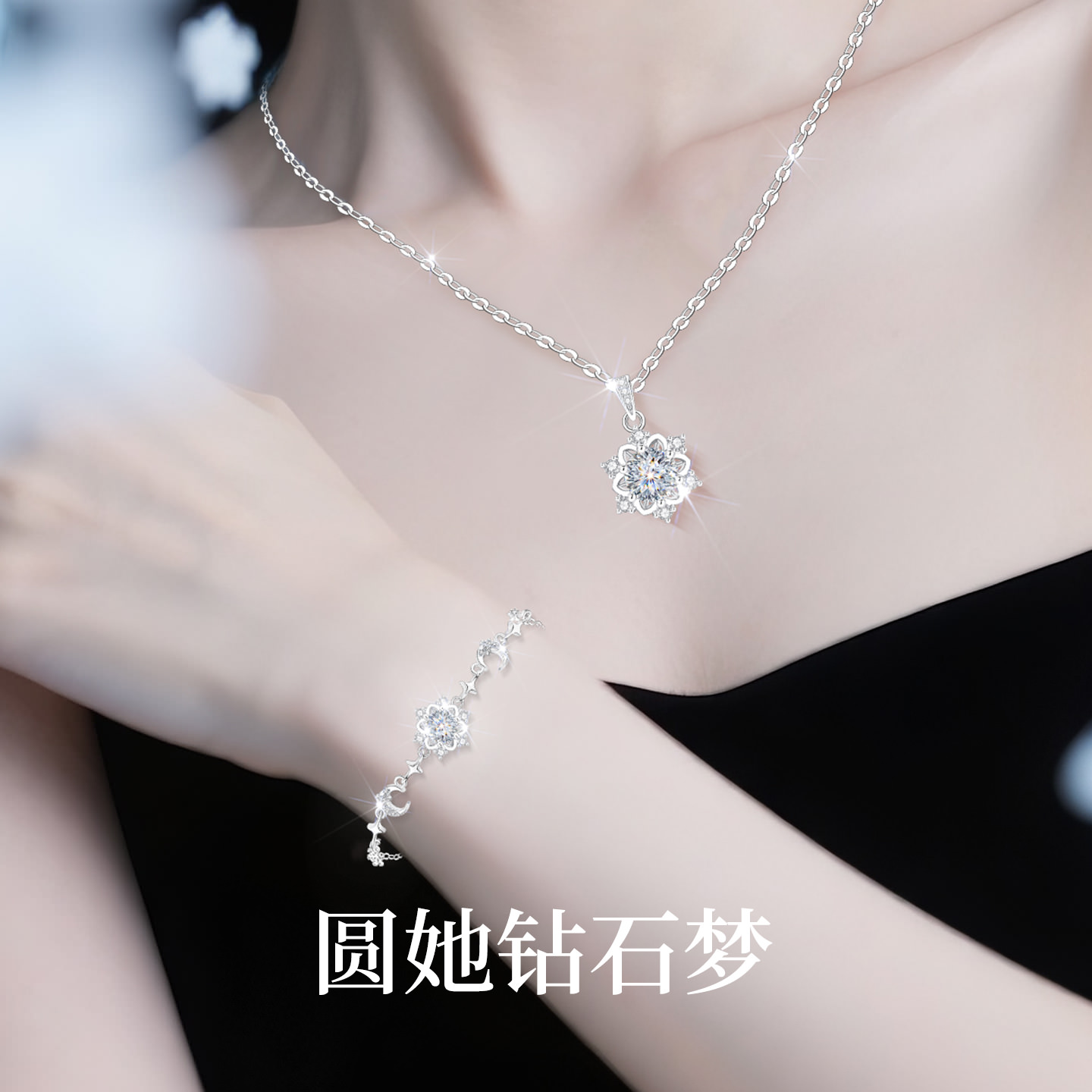 银项链手链纯银999女款2025新款莫桑石钻石莫桑钻雪花吊坠女士女