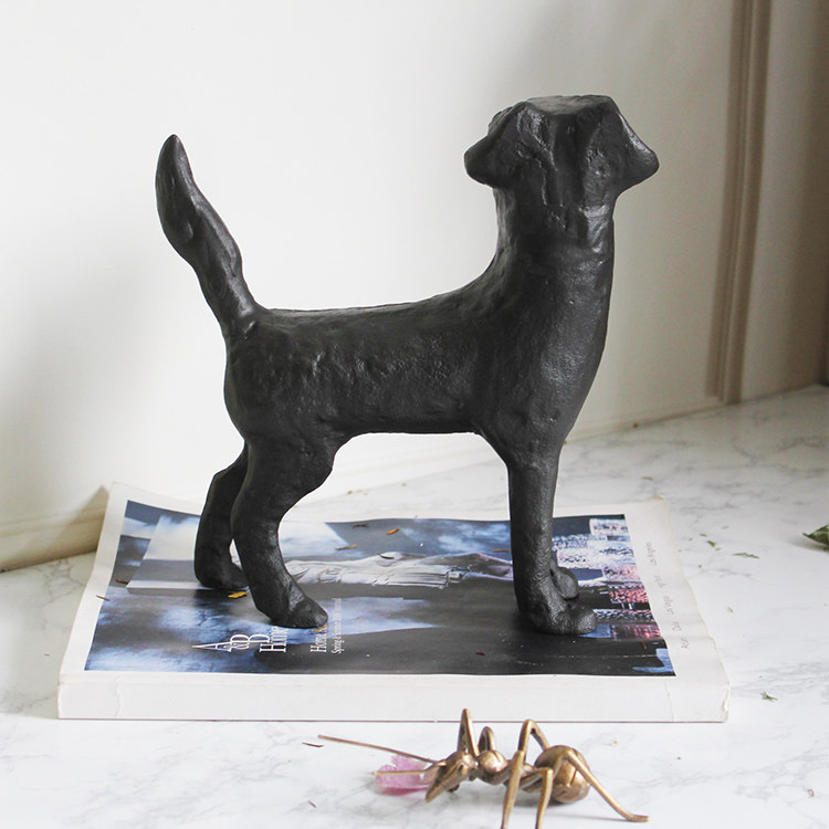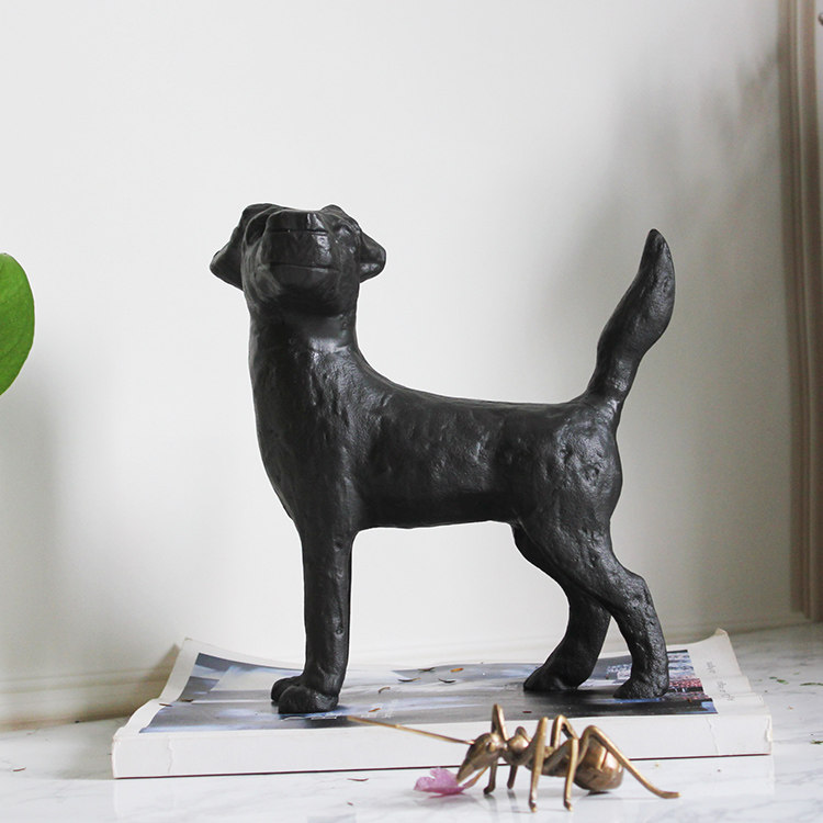 北欧美式印度进口铝合金黑色小狗装饰摆件金属工艺品会所设计师
