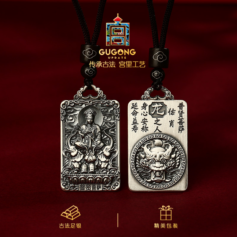 宫里上新银吊坠男款999纯银项链无事牌生肖本命佛足银生日礼物