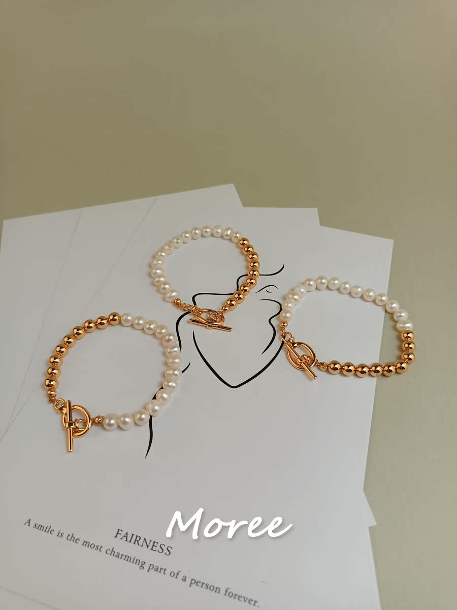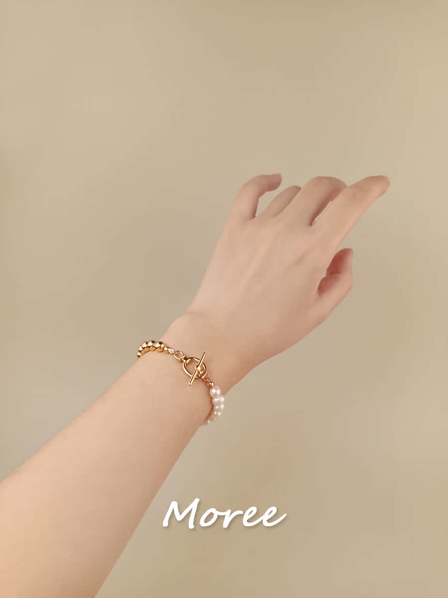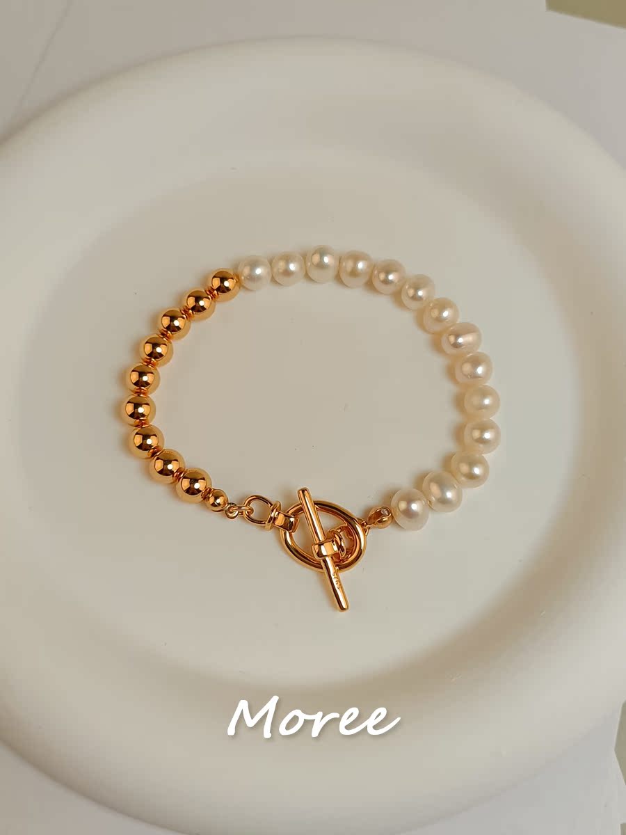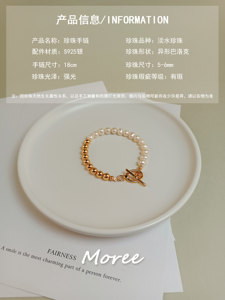莫里Moree 珍珠手链手串不对称设计巴洛克珍珠925银OT扣潮流时尚