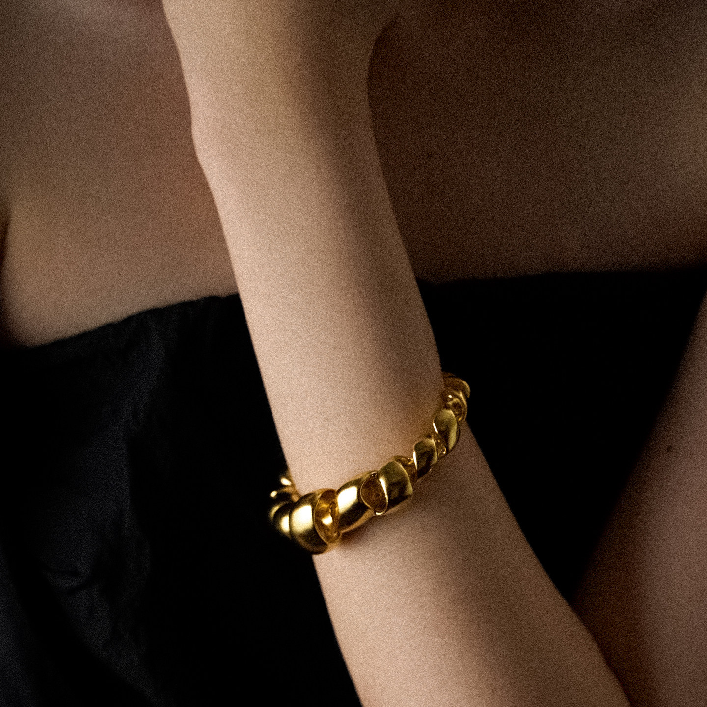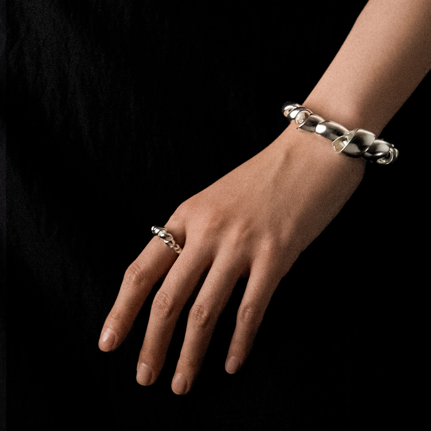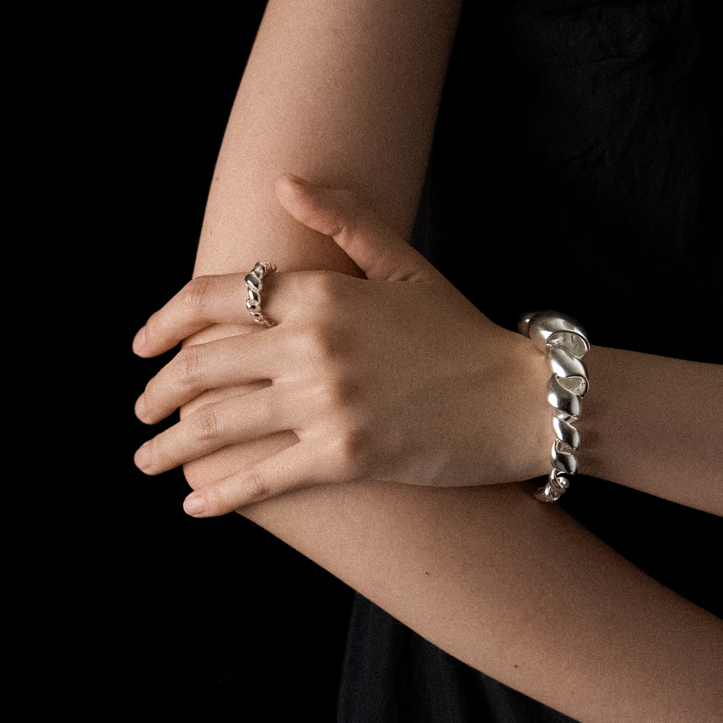 Limb掠目 乐章系列原创设计缎带舞曲镀银手饰高级感开口手镯子女