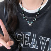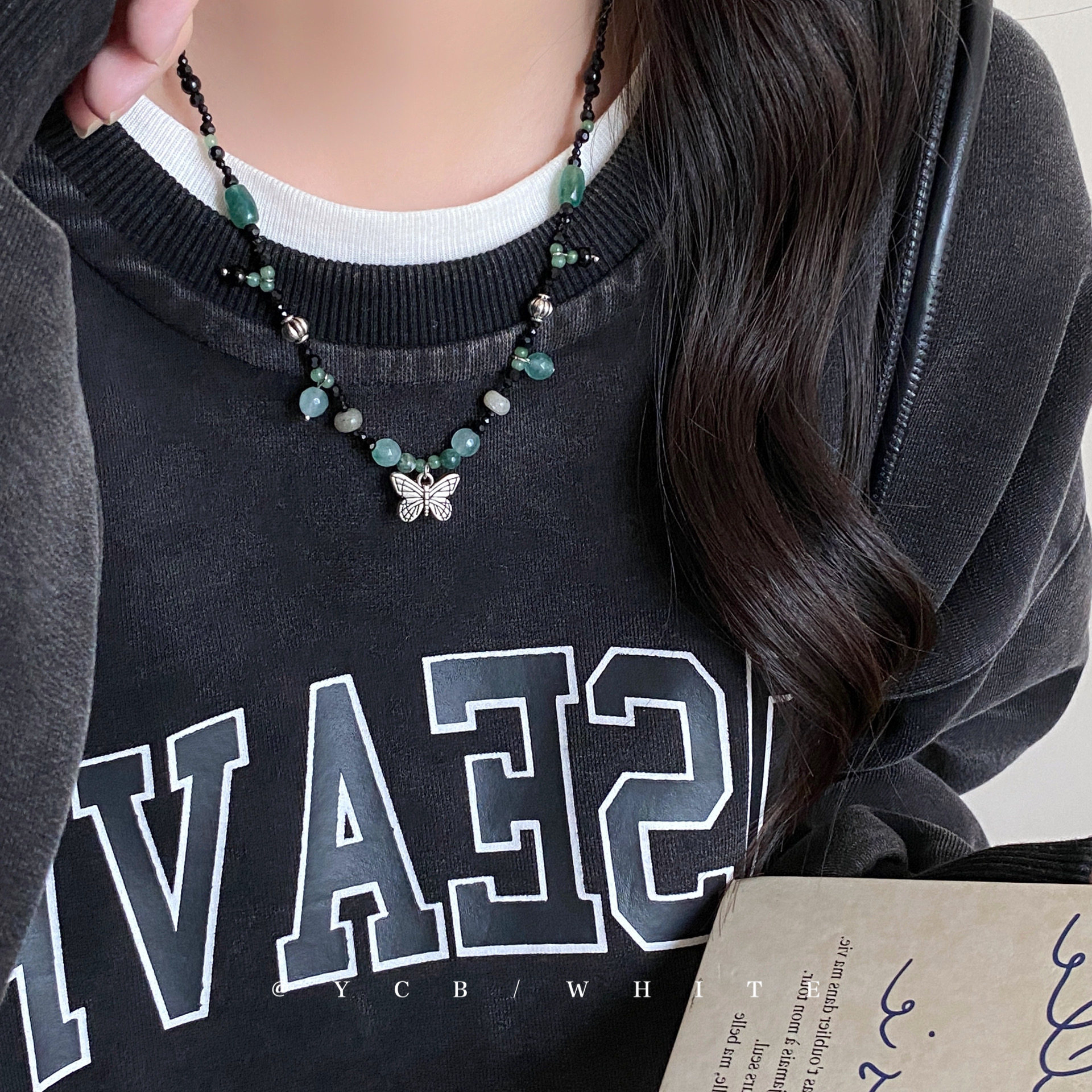「青黛山」轻奢复古绿色串珠蝴蝶项链小众设计感锁骨链个性颈链