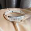 永记银铺足银9999福字妈妈款实心莲花车花推拉调节纯银手镯长辈礼