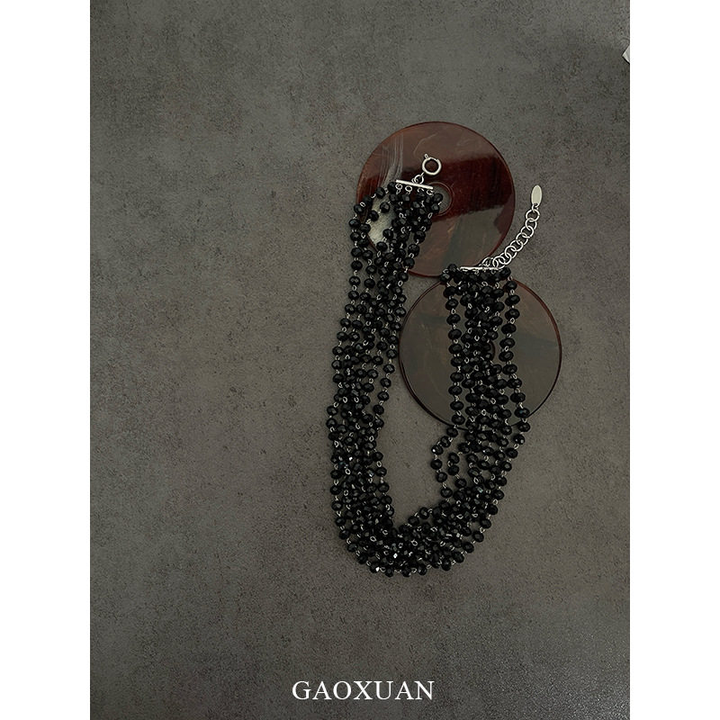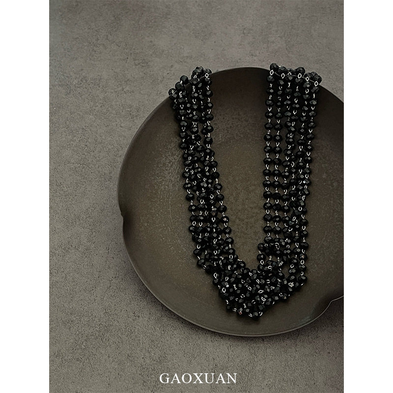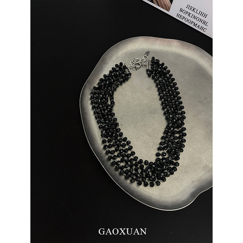 gaoxuan原创设计多层黑色水晶串珠项链复古暗黑甜酷风感个性锁骨