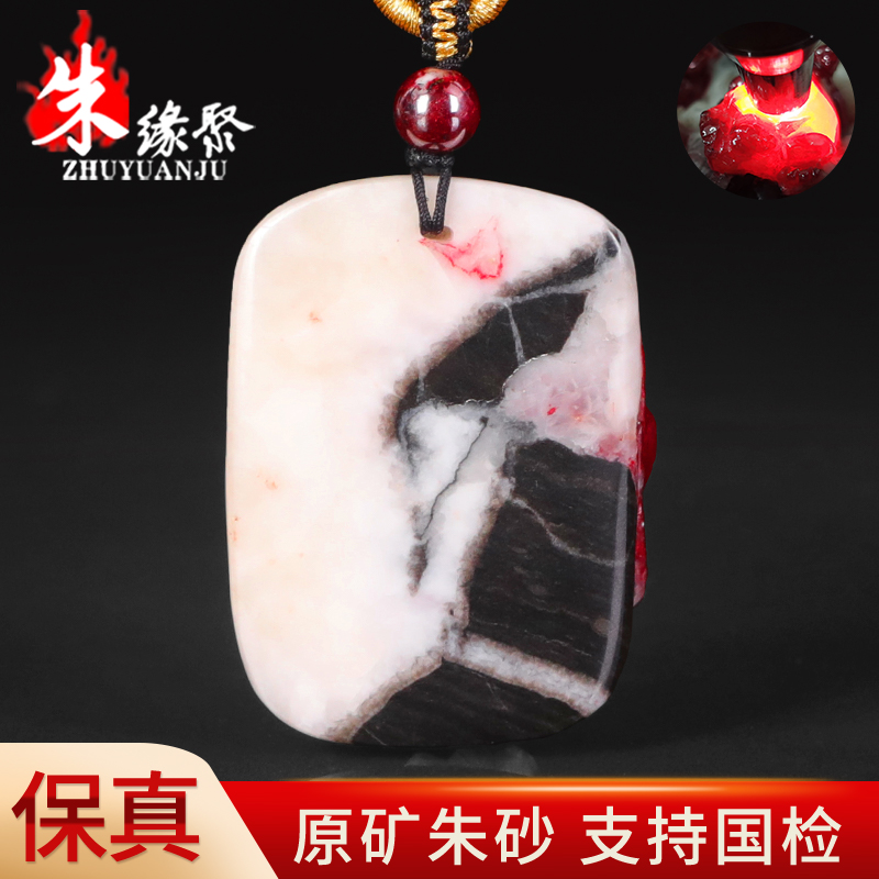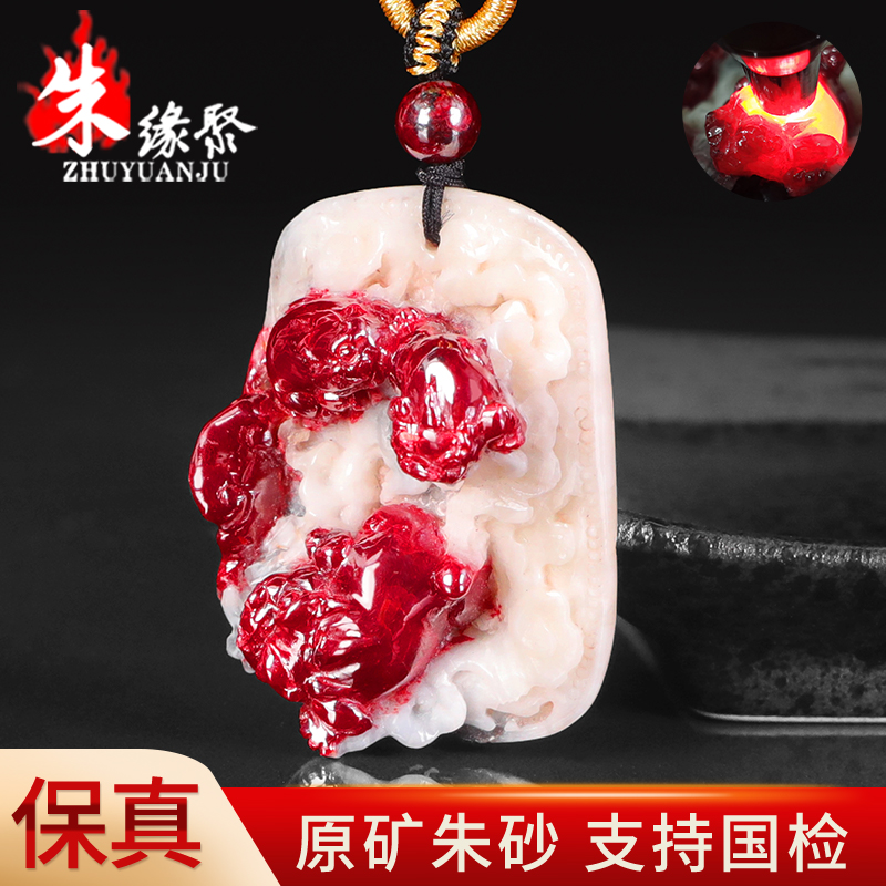 朱缘聚朱砂吊坠男正品官方旗舰店原矿石晶体全透光雕刻貔貅挂件女