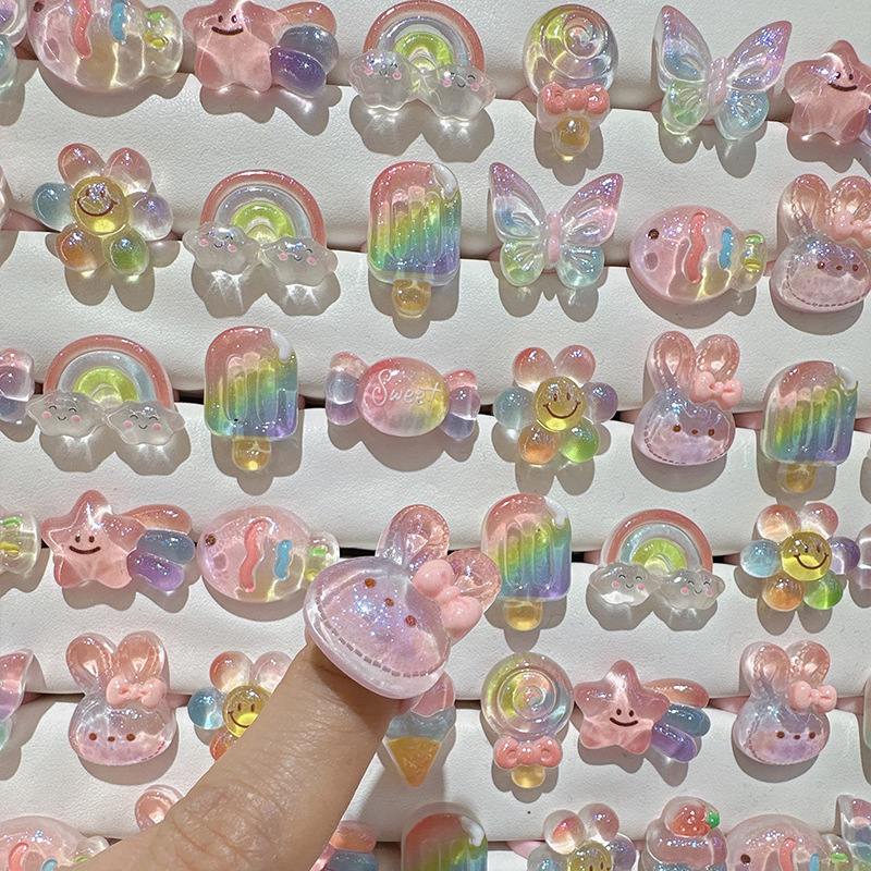 新款电镀戒指卡通迷你混合手工奶油胶树脂配件饰品材料批发