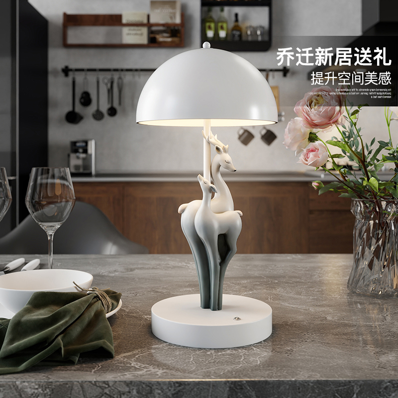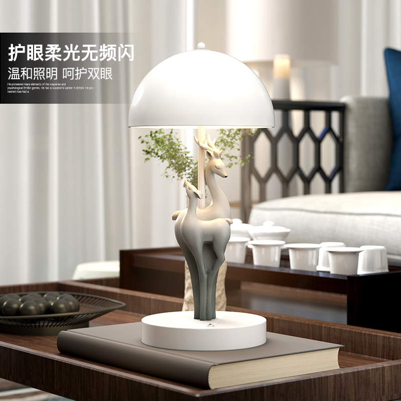 现代简约鹿台灯摆件玄关书房长明灯卧室床头小夜灯氛围桌面装饰品