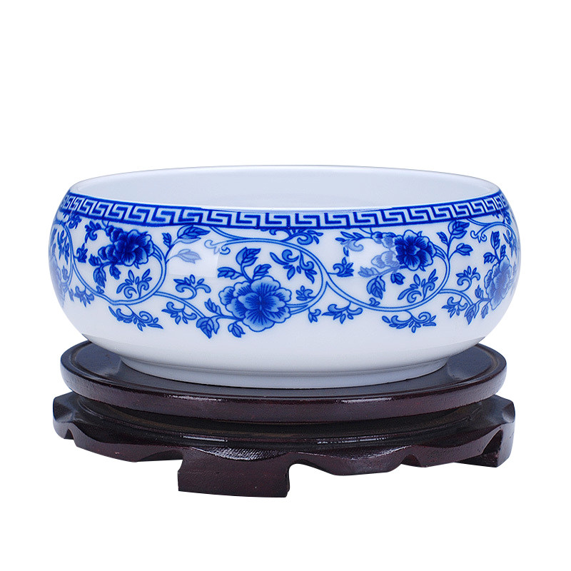 224景德镇陶瓷 青花瓷小金鱼缸睡莲盆碗莲乌龟缸 水族笔洗养鱼盆